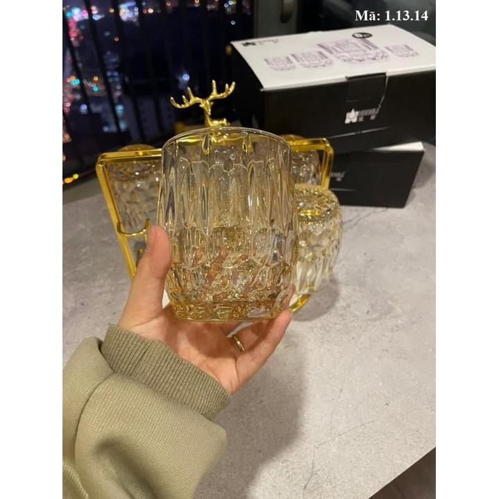 Bộ Bình Cốc Uống Nước Thuỷ Tinh Hổ Phách Cao Cấp 8 Chi Tiết Sang Trọng Độ Bên Cao M04