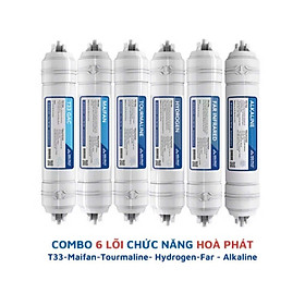 Mua tại Tiktok[Combo] Bộ 6 Lõi chức năng Hòa Phát - Hàng chính hãng +Chuyên dùng thay thế cho các máy lọc nước RO THÔNG TIN SẢN PHẨM : Cấu tạo bộ 6 lõi lọc: Bộ sản phẩm bao gồm 6 lõi chức năng :T33 GAC , Maifan , Tourmaline , Hydrogen ,Far Infrared , Alkaline