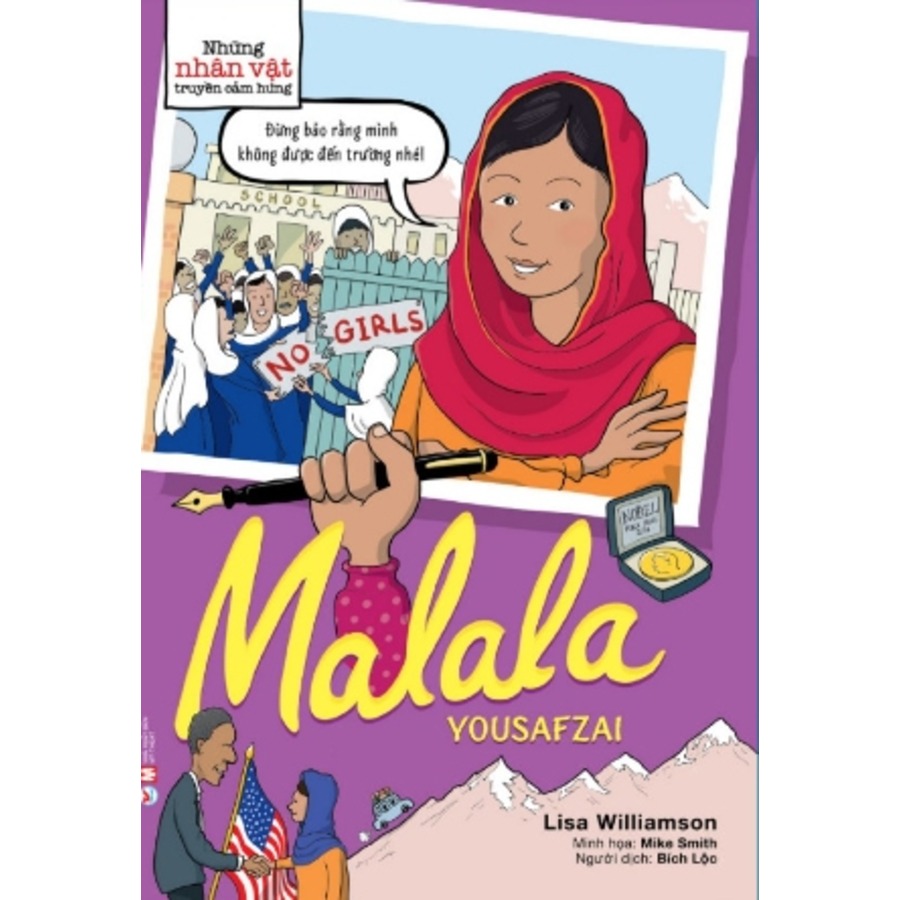 Những Nhân Vật Truyền Cảm Hứng - Malala Yousafzai: Đây là câu chuyện có thật về Malala Yousafzai, một cô bé dũng cảm và có nghị lực phi thường. Cô là một nhà hoạt động xã hội tài giỏi và can đảm, người đã sống sót vượt qua tuổi 15 đầy sóng gió sau khi bị quân Taliban bắn vào đầu và giờ vẫn đang tiếp tục đấu tranh để giành quyền được hưởng giáo dục cho trẻ em gái. Đọc cuốn sách bạn sẽ biết trận động đất đã ảnh hưởng đến cuộc sống của Malala như thế nào? Vì sao mọi người lại quên sinh nhật lần thứ 12 của Malala? Và quá trình Malala trở thành người trẻ tuổi nhất trong lịch sử được vinh dự nhận Giải thưởng Nobel Hòa bình.