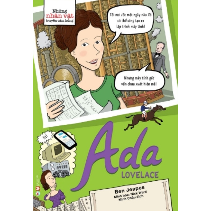 Những Nhân Vật Truyền Cảm Hứng - Ada Lovelace: Đọc cuốn sách, bạn sẽ có cơ hội gặp gỡ với Ada Lovelace, nhà toán học với bộ óc đại tài, người đã tiên đoán được sức mạnh của máy vi tính từ rất lâu, trước khi chúng được phát minh ra. Ada Lovelace sinh ngày 10/12/1815 tại Anh. Bà là con gái của nhà thơ Lord Byron, nhân vật tiêu biểu trong phong trào lãng mạn và là một trong những nhà thơ có ảnh hưởng lớn ở Anh. Từ nhỏ Ada sống với mẹ, nổi tiếng là thông minh, có năng khiếu đặc biệt về toán học và khoa học, nhưng bà chỉ theo học với gia sư riêng tại nhà. Năm 1933, bà gặp nhà toán học người Anh Charles Babbage và tò mò với ý tưởng của ông về một cỗ máy có khả năng tính toán. Năm 1842, nhà toán học Luigi Menabrea xuất bản một cuốn hồi kí mô tả Công cụ phân tích. Ada sau đó đã dịch văn bản từ tiếng Pháp sang tiếng Anh cho Babbage và có thêm phần Ghi chú của mình. Trong Ghi chú, bà tập hợp các ghi chép ban đầu giải thích về một phương pháp cụ thể nhằm thực hiện các thuật toán. Ngày nay, chúng được công nhận là thuật toán đầu tiên trong lịch sử. Năm 1953, những Ghi chú của Ada được tái khám phá và tái bản, bà bắt đầu được công nhận và danh tiếng của Ada rất xứng đáng với những gì bà đã cống hiến cho nhân loại!