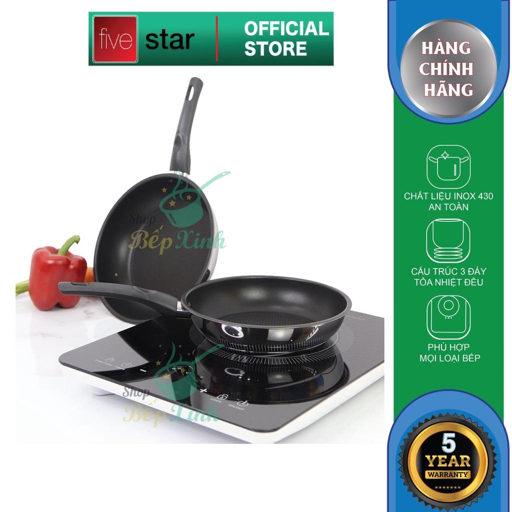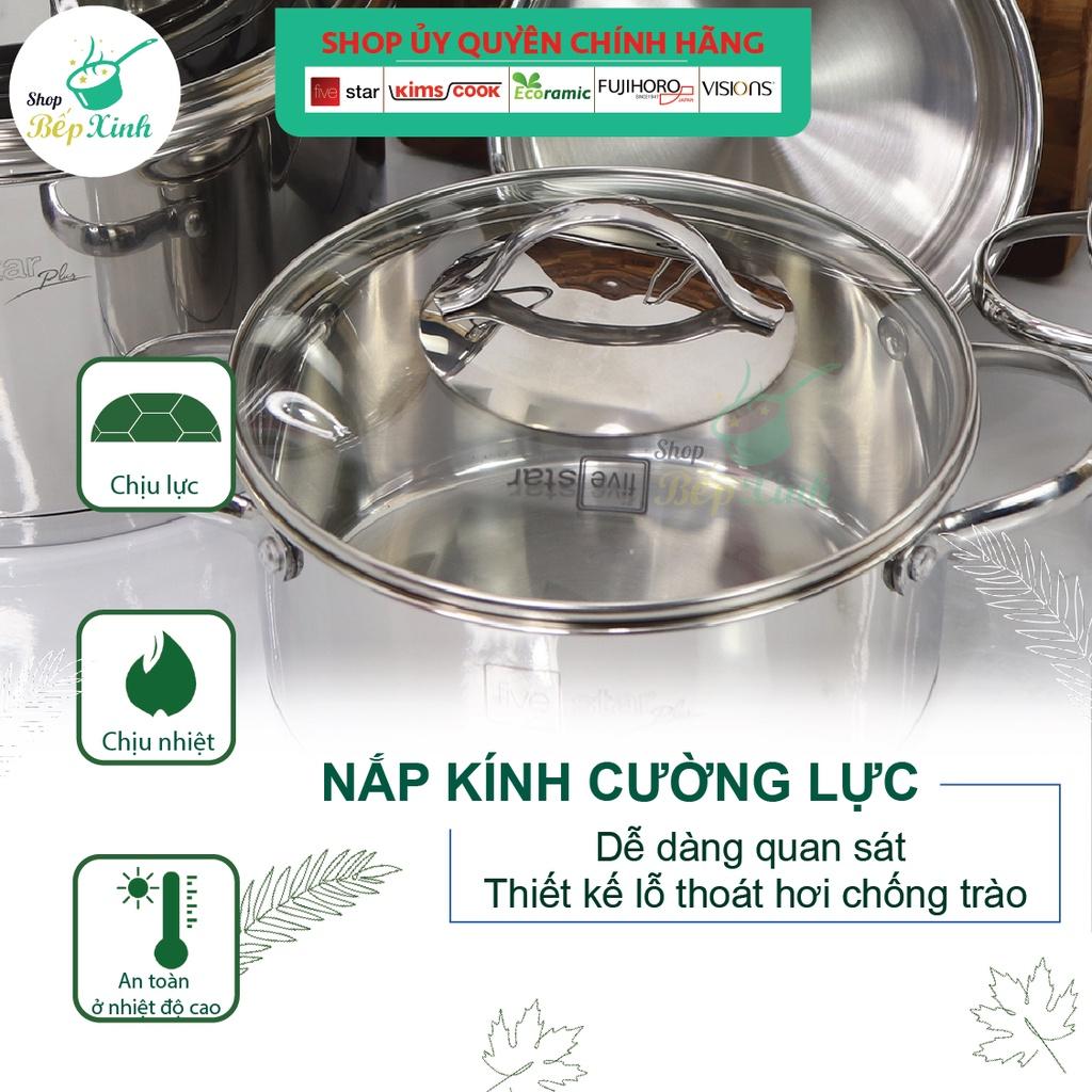 Bộ nồi chảo xửng hấp 3 Đáy Inox 430 cao cấp Fivestar Standard bếp từ nắp kính , tặng 1 vá canh Bộ nồi inox có 9 món gồm : +Quánh có đường kính