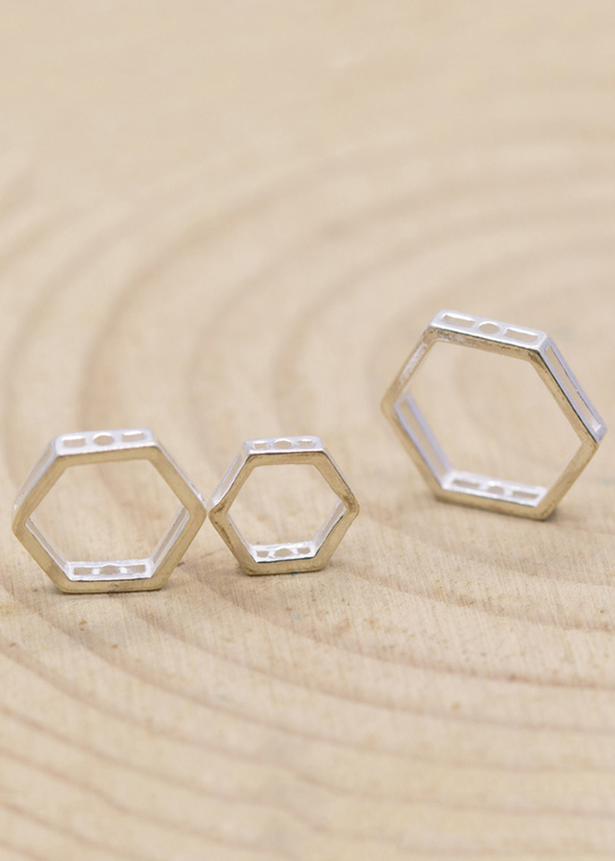 CHARM BẠC HÌNH LỤC GIÁC RỖNG :
