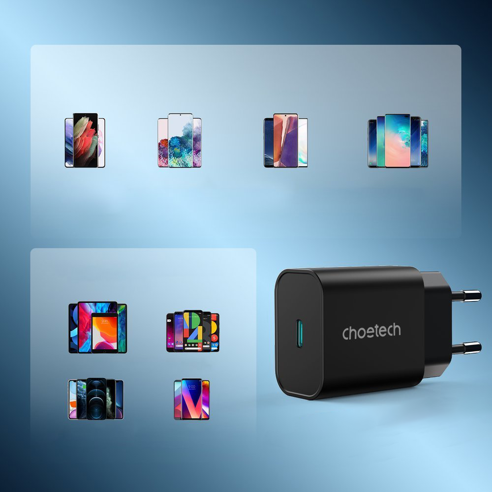Cóc củ sạc type c sạc nhanh 20W chuẩn PD 3.0 hiệu CHOETECH Q5004 trang bị công nghệ chip sạc thông minh, thiết kế siêu nhỏ gọn, cổng cắm EU, thương hiệu của Đức