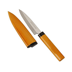 Dao gọt hoa quả cao cấp KAI có nắp đậy cán gỗ nội địa Nhật Bản Chất liệu: lưỡi bằng thép không gỉ, tay cầm và nắp bằng gỗ Kích thước: chiều dài lưỡi dao