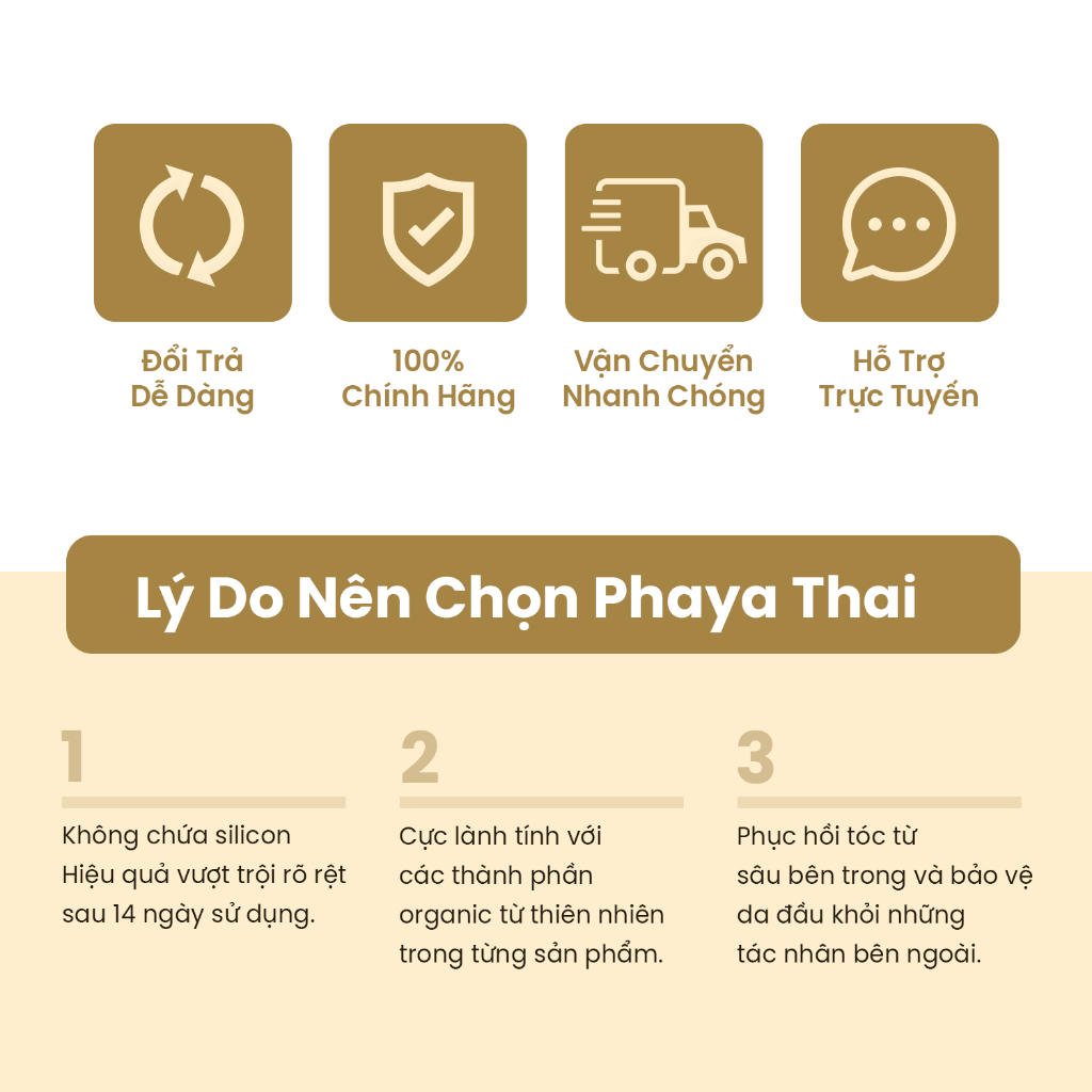 - Song song còn có dầu dừa với khả năng làm sạch dịu nhẹ, không gây kích ứng cho da đầu. Bổ sung Keratin và Biotin giúp cung cấp protein cho nang tóc giúp tóc chắc khỏe, hạn chế được vấn đề gãy rụng cho tóc. CÔNG DỤNG: Dầu gội , Dầu xả, Xịt dưỡng tóc giúp sạch tóc và da đầu, giảm rụng tóc, dưỡng tóc mềm mượt ĐỐI TƯỢNG SỬ DỤNG: Dùng cho mọi đối tượng. HƯỚNG DẪN SỬ DỤNG Làm ướt tóc và da đầu. Lấy khoảng 3 - 5 ml dầu gội thoa đều và gội nhẹ nhàng rồi xả kỹ bằng nước sạch. Có thể gội lần thứ 2 giúp tóc mềm mượt hơ Sau khi gội sạch sử dụng kết hợp Dầu Xả Bưởi và Serum Bưởi Phaya Thai Spa để mang lại kết quả tốt nhất KHUYẾN CÁO & HƯỚNG DẪN BẢO QUẢN: Tránh tiếp xúc trực tiếp với mắt, nếu sản phẩm dính vào mắt, hãy rửa sạch bằng nước. Ngưng sử dụng nếu kích ứng với bất kỳ thành phần nào của sản phẩm Bảo quản nơi khô ráo, thoáng mát, tránh ánh sáng trực tiếp. Xuất xứ: Việt Nam ♛ Cam kết sản phẩm có nguồn gốc rõ ràng, sản phẩm chính hãng ♛ Đền gấp 10 lần sản phẩm nếu phát hiện kém chất lượng ♛ Đội ngũ tư vấn viên nhiệt tình, hỗ trợ giải đáp thắc mắc trong thời gian ngắn nhất Hỗ trợ đổi trả theo quy định của Shop với điều kiện: ➊ Hàng vẫn còn mới, chưa qua sử dụng ➋ Hàng bị lỗi hoặc hư hỏng do vận chuyển hoặc do nhà sản xuất ➌ Có video quay lại quá trình mở hộp và kiểm tra từng sản phẩm. Video rõ ràng, thấy được gói hàng còn nguyên vẹn, còn niêm phong.