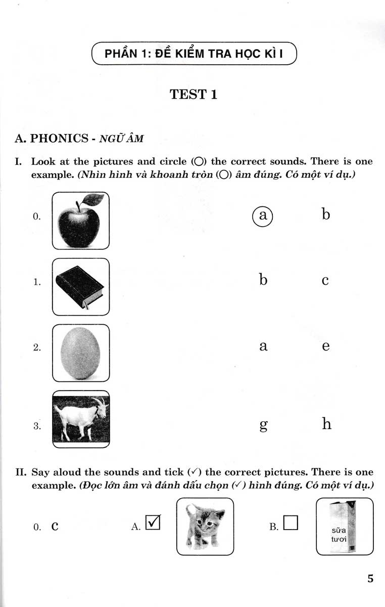 Tuyển Tập Đề Kiểm Tra Tiếng Việt 1 có hệ thống bài tập ôn luyện kiến thức cơ bản, tác giả còn đưa vào những bài tập có độ khó cao hơn để các em hiểu đầy đủ và sâu sắc hơn nội dung, nghệ thuật của văn bản. Nhờ vậy các em không chỉ nắm vững được kiến thức cơ bản mà còn được mở rộng và nâng cao hơn về kiến thức tiếng việt; biết vận dụng một cách linh hoạt những kiến thức đã học vào các bài kiểm tra theo chủ điểm, phát huy tính tích cực, chủ động trong môn Tiếng Việt.