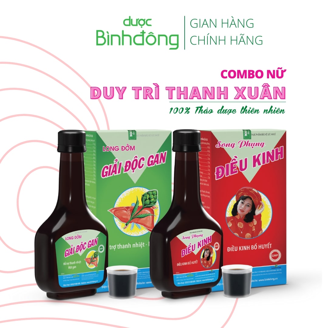 Mua tại TiktokBạn có từng… Mụn nhiều, da sạm, vàng hoặc khô ráp do nóng trong. Kinh nguyệt không đều, trễ kinh, bế kinh hoặc rong kinh kéo dài. Đau bụng dữ dội mỗi khi “đến kỳ”, mệt mỏi, khó chịu. Hoa mắt, chóng mặt, da xanh xao, cơ thể thiếu sức sống. Cuộc sống hiện đại với áp lực công việc, căng thẳng kéo dài, chế độ ăn uống thất thường và môi trường ô nhiễm,... khiến chị em rơi vào trạng thái “stress” kéo dài, không chỉ ảnh hưởng đến tinh thần mà còn là nguyên nhân khiến cơ thể bị quá tải Combo Duy Trì Thanh Xuân – Dược Bình Đông chính là giải pháp kết hợp từ thảo dược thiên nhiên giúp mát gan, bổ huyết, điều hòa kinh nguyệt và hỗ trợ cải thiện sức khỏe từ bên trong. Song Phụng Điều Kinh – Bổ huyết, điều kinh, giúp da dẻ hồng hào, giảm đau bụng kinh, hỗ trợ chu kỳ ổn định. Long Đởm Giải Độc Gan – Thanh nhiệt, giải độc, hỗ trợ chức năng gan, giảm triệu chứng nóng trong, mụn nhọt,... Combo Duy Trì Thanh Xuân – Bình Đông không chỉ chăm sóc sức khỏe và nhan sắc một cách tự nhiên, mà còn là sự đầu tư dài hạn để giữ gìn nét rạng ngời và sự tự tin của phái đẹp. THÔNG TIN SẢN PHẨM Nhà phân phối: Công ty TNHH Dược Phẩm Bình Đông Số công bố: Song Phụng Điều Kinh: 7733/2020/ĐKSP Long Đởm Giải Độc Gan: 1540/2020/ĐKSP Hạn sử dụng: 36 tháng kể từ ngày sản xuất (in trên bao bì) Quy cách: Combo gồm 6 chai: 03 chai Song Phụng Điều Kinh 280ml cao lỏng 03 chai Long Đởm Giải Độc Gan 280ml cao lỏng THÀNH PHẦN Song Phụng Điều Kinh: Xuyên khung, Đương quy, Thục địa, Bạch thược, Bạch phục linh, Ích mẫu, Hương phụ, Ngải diệp, Đại hoàng. Long Đởm Giải Độc Gan: Long đởm thảo, Chi tử, Nhân trần, Trạch tả, Đại hoàng, Sinh địa, Hoàng cầm, Sài hồ, Cam thảo, Diệp hạ châu, Atiso. CÔNG DỤNG Hỗ trợ bổ huyết, điều hòa kinh nguyệt. Hỗ trợ giảm triệu chứng đau bụng kinh, bế kinh, trễ kinh. Hỗ trợ giải độc, thanh nhiệt, mát gan, tăng cường chức năng gan. ĐỐI TƯỢNG SỬ DỤNG Phụ nữ trên 12 tuổi bị rối loạn kinh nguyệt, đau bụng kinh, bế kinh, trễ kinh. Phụ nữ có chức năng gan suy giảm với biểu hiện: nóng trong, mẩn ngứa, mụn nhọt, vàng da. HƯỚNG DẪN SỬ DỤNG: Uống sau ăn trong vòng 30 phút, lắc đều trước khi dùng. Sáng: Uống 30ml Song Phụng Điều Kinh sau ăn. Tối: Uống 30ml Long Đởm Giải Độc Gan sau ăn. LƯU Ý KHI SỬ DỤNG: Không dùng cho người mẫn cảm với bất kỳ thành phần nào của sản phẩm. Không dùng cho người dưới 12 tuổi, phụ nữ có thai hoặc cho con bú, người đang bị tiêu chảy. Lưu ý: – Sản phẩm này không phải là thuốc và không có tác dụng thay thế thuốc chữa bệnh. – Tùy vào cơ địa mỗi người mà thời gian sản phẩm phát huy tác dụng sẽ khác nhau. BẢO QUẢN: Bảo quản nơi thoáng mát, tránh ánh nắng trực tiếp, tránh ẩm và để xa tầm tay trẻ em.