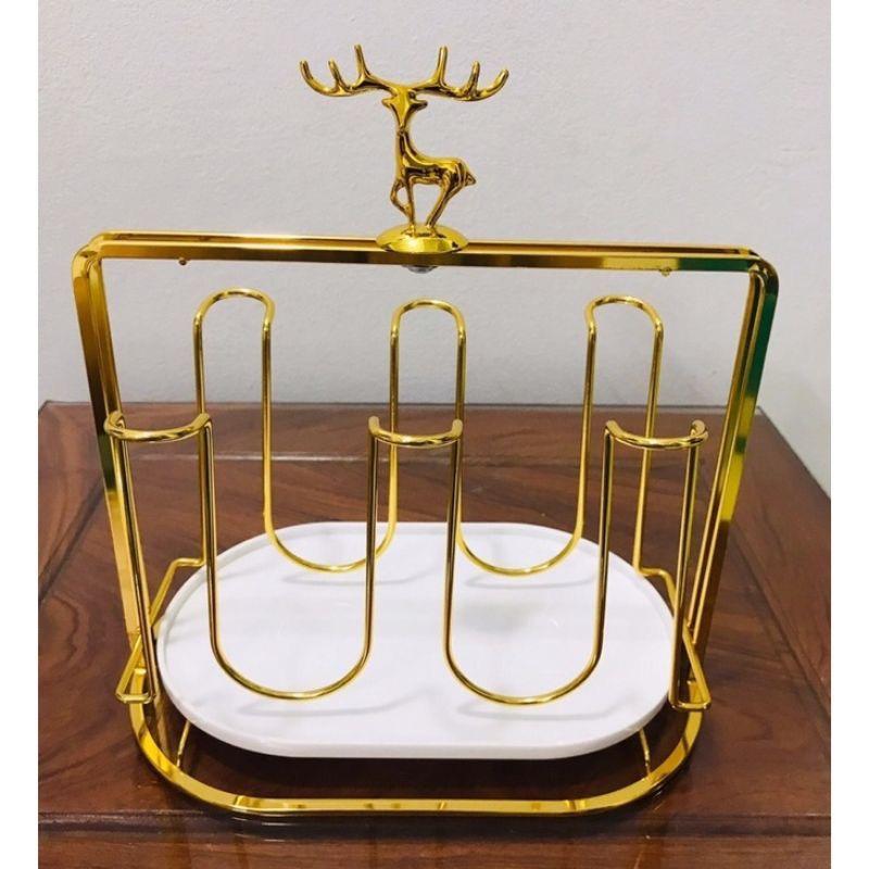 Giá Đỡ Cốc Kim Loại Mạ Vàng Cao Cấp Tạo Hình Đầu Hươu Kèm Khay Hứng Nước Tiện Lợi Dễ Dàng Sử Dụng