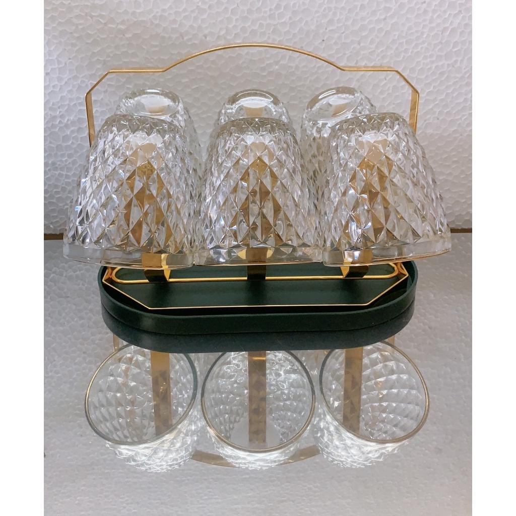 ✨Combo giá úp cốc mạ vàng có khay hứng nước kèm 6 cốc loe vân hạt kim cương