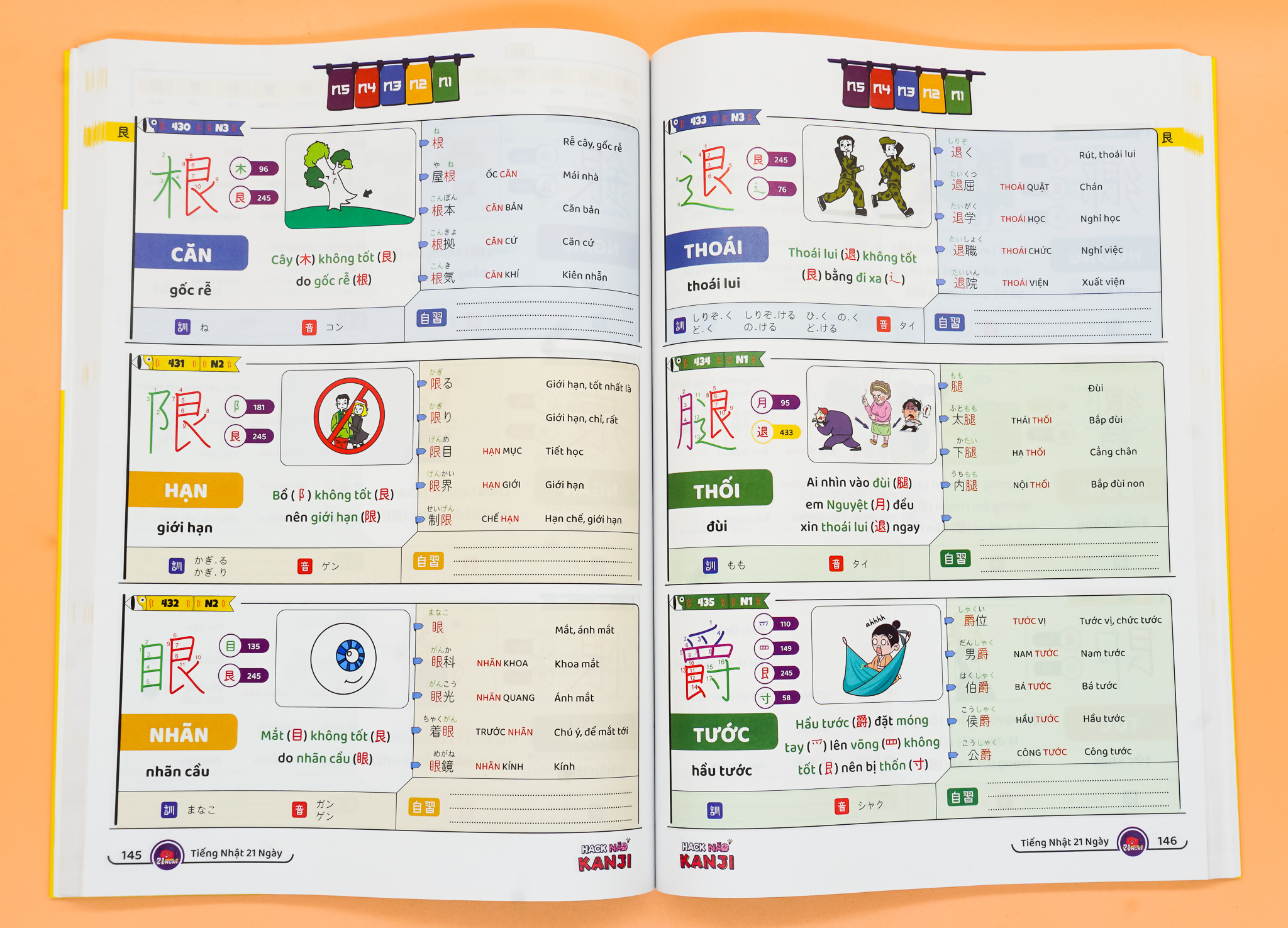 Mua tại TiktokHACK NÃO 2500 KANJI - HƯỚNG DẪN GHI NHỚ NHANH KANJI QUA CÂU CHUYỆN VÀ CHỮ KANJI GIỐNG NHAU