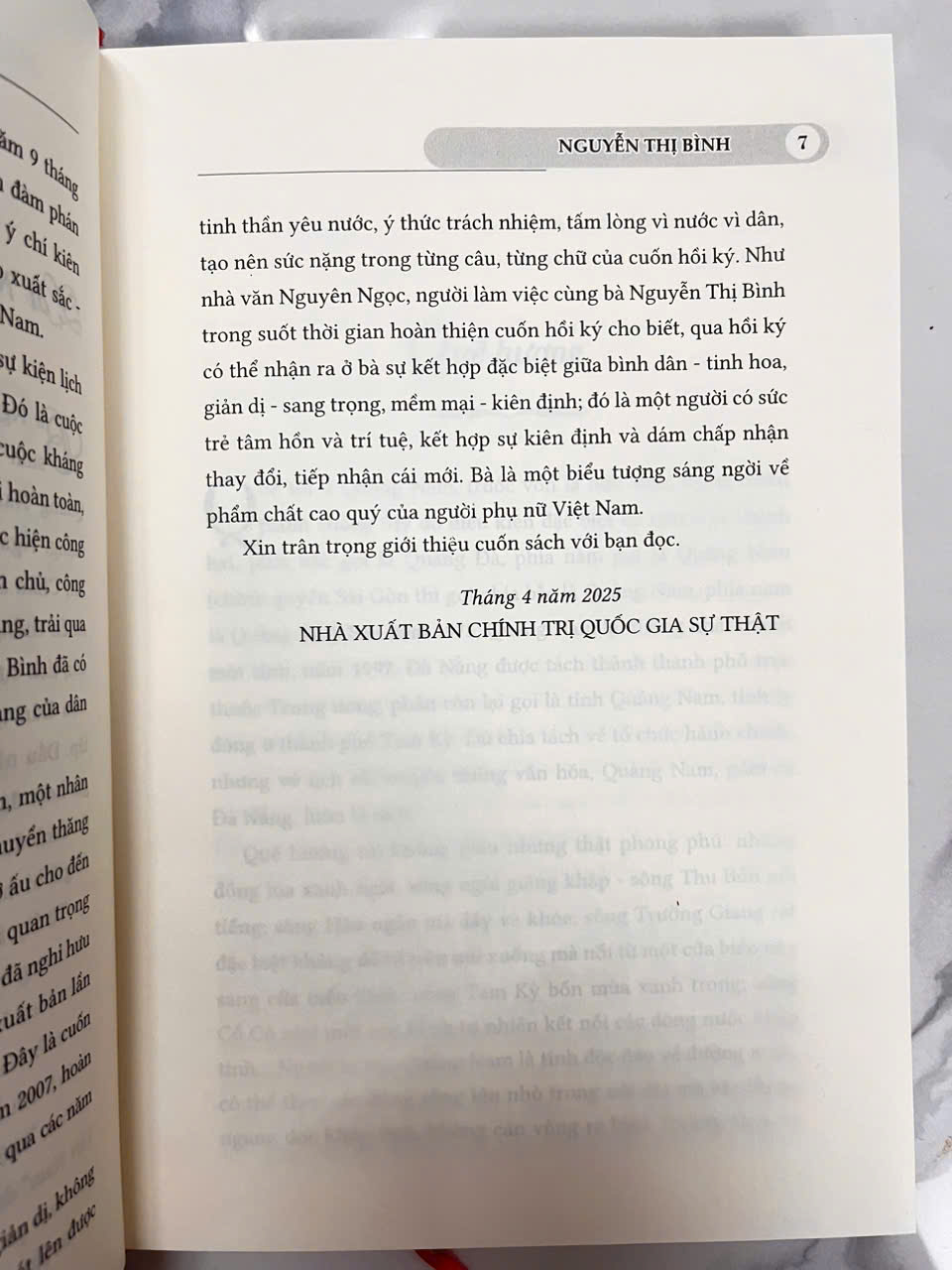 Đây là cuốn hồi ký của bà Nguyễn Thị Bình, nguyên Phó Chủ tịch nước, nữ Bộ trưởng Ngoại giao đầu tiên, Trưởng đoàn đàm phán của Chính phủ Cách mạng Lâm thời Cộng hòa miền Nam Việt Nam tại Hòa đàm Paris.
