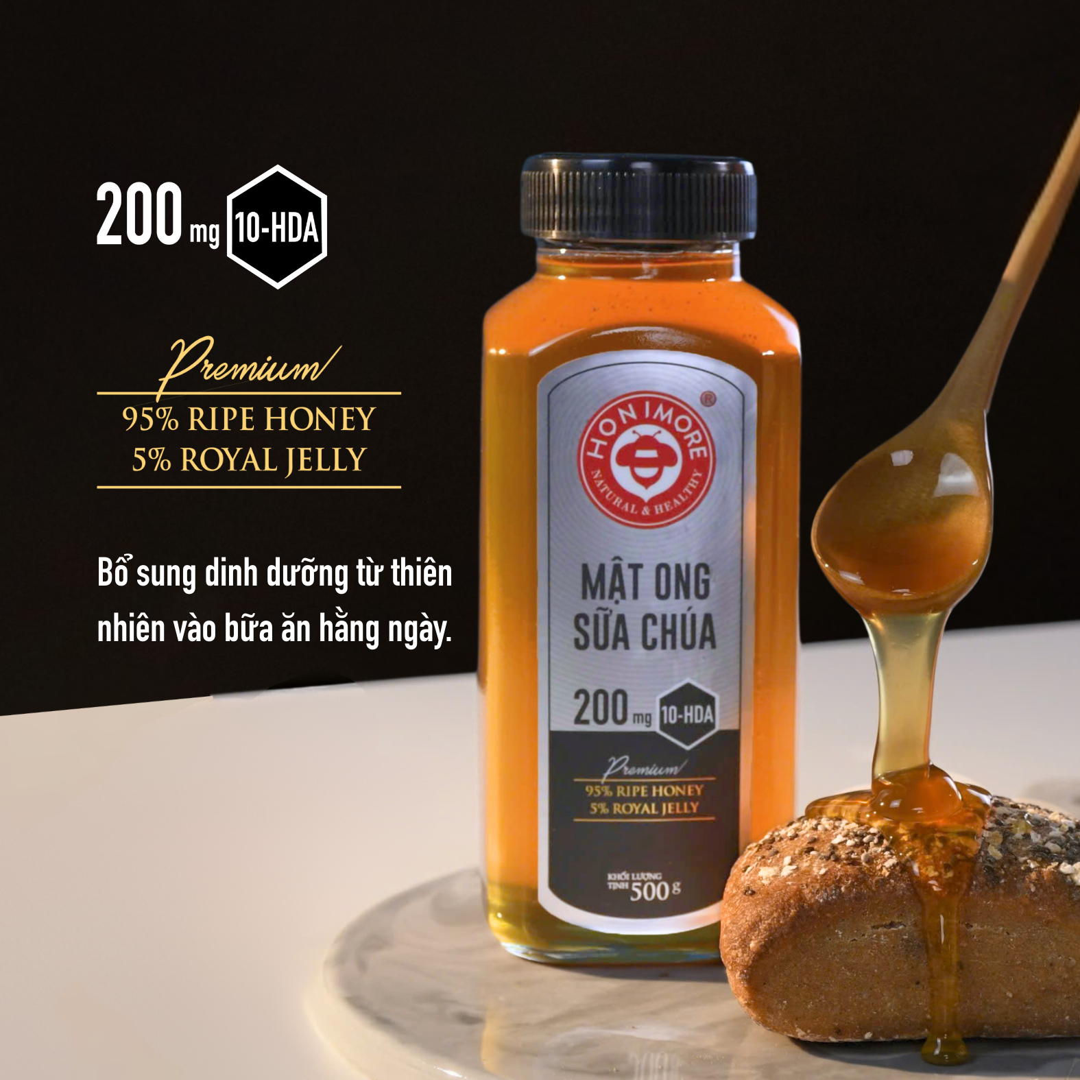 Thành phần của sữa ong chúa nguyên chất được phân tích bằng cách xác định độ ẩm, protein, vitamin, 10-HDA...
