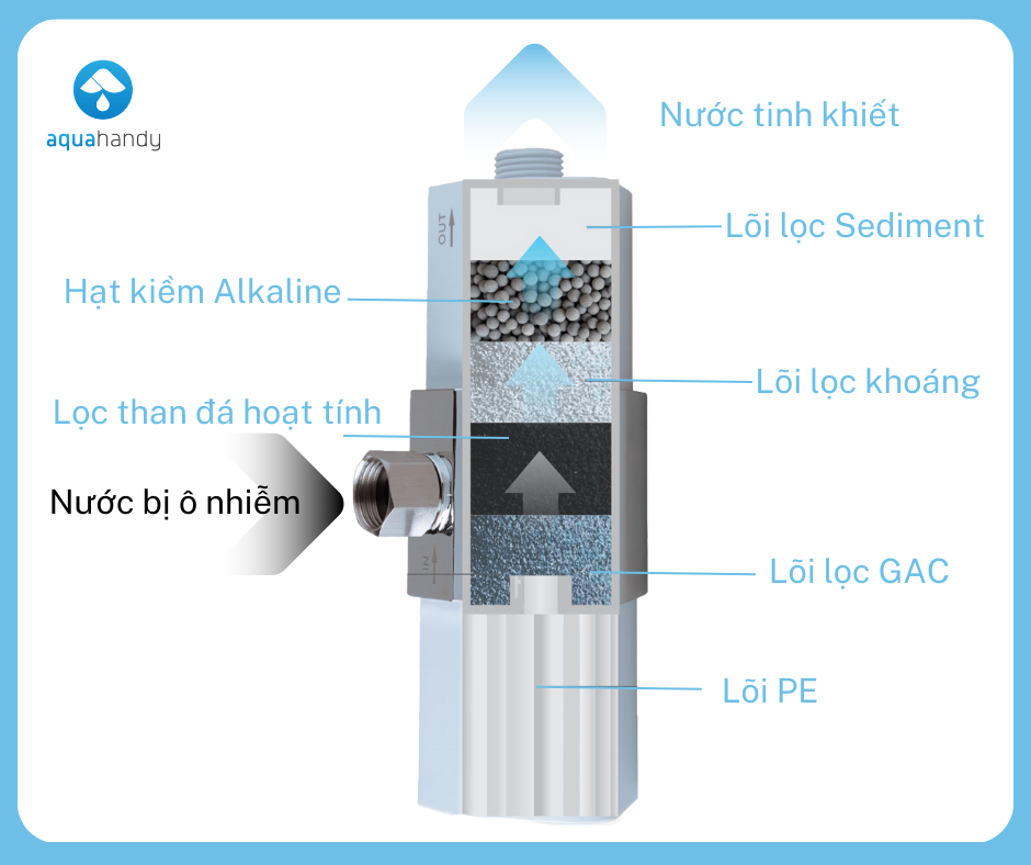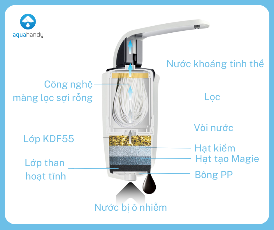 - Lõi lọc kháng khuẩn chống lại tái nhiễm khuẩn ngay trong bình chứa nước