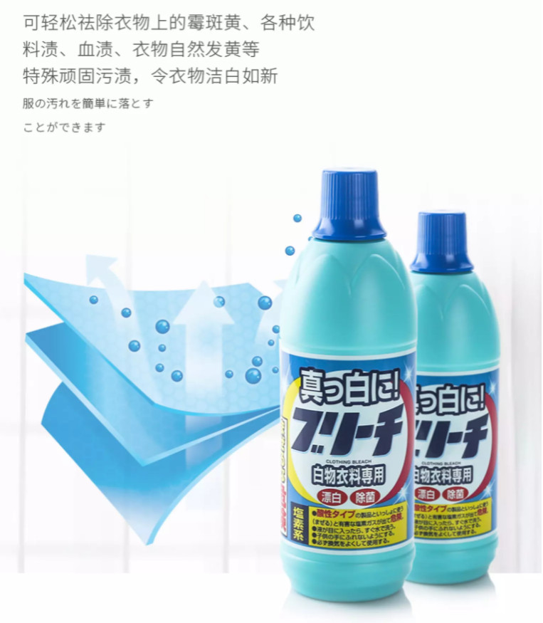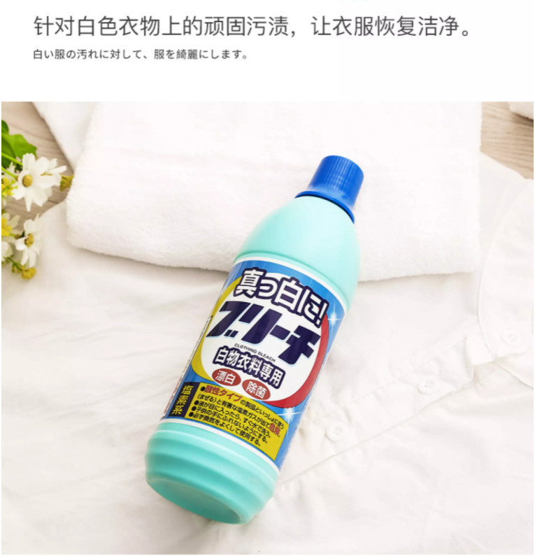 Nước tẩy trắng quần áo Rocket 600ml ■ Xuất xứ: Nhật Bản | MADE IN JAPAN ■ Kích thước:10 x 23.6 Hcm ■ Màu sắc: Màu trắng ■ Chất liệu: - Sodium Hypochlorite (clo), Natri hydroxit, Hydrogen Peroxide,