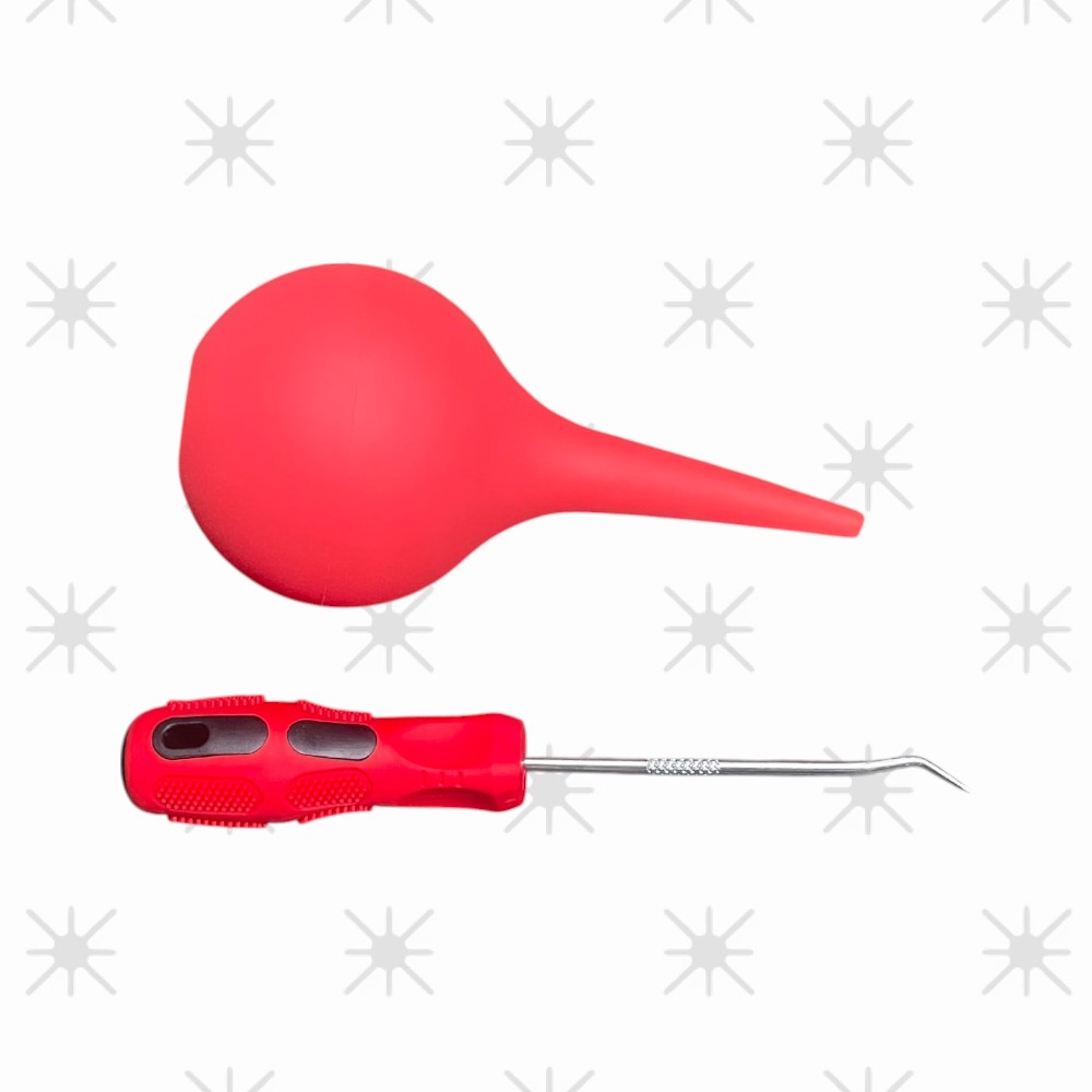 - Thuyết minh: Bạn là kỹ thuật viên máy in? Bạn cần những dụng cụ gọn nhẹ, hiệu quả để hỗ trợ sửa chữa, vệ sinh máy in? Combo dụng cụ kỹ thuật sửa máy in là sự lựa chọn lý tưởng, gồm: Bóng thổi khí cao su mềm, chất liệu cao su đàn hồi tốt, dễ bóp, lực thổi mạnh giúp loại bỏ bụi bẩn, mảnh vụn giấy, mực thừa bên trong máy in. Đặc biệt hữu ích khi vệ sinh trục, đầu in, hộp mực, bo mạch… mà không cần chạm tay trực tiếp, giảm thiểu rủi ro tĩnh điện, bảo vệ linh kiện. Móc gỡ linh kiện đầu cong chuyên dụng: Cán nhựa chắc chắn, bọc cao su chống trượt, dễ cầm nắm. Đầu móc inox không gỉ, được uốn cong tinh tế - thuận tiện khi tháo gỡ chip mực, lò xo, bánh răng, các chi tiết nhỏ khó tiếp cận. Hạn chế làm trầy xước linh kiện, tăng độ chính xác khi thao tác. Với thiết kế nhỏ gọn, dễ mang theo, dụng cụ không thể thiếu trong túi đồ nghề của bất kỳ kỹ thuật viên nào.