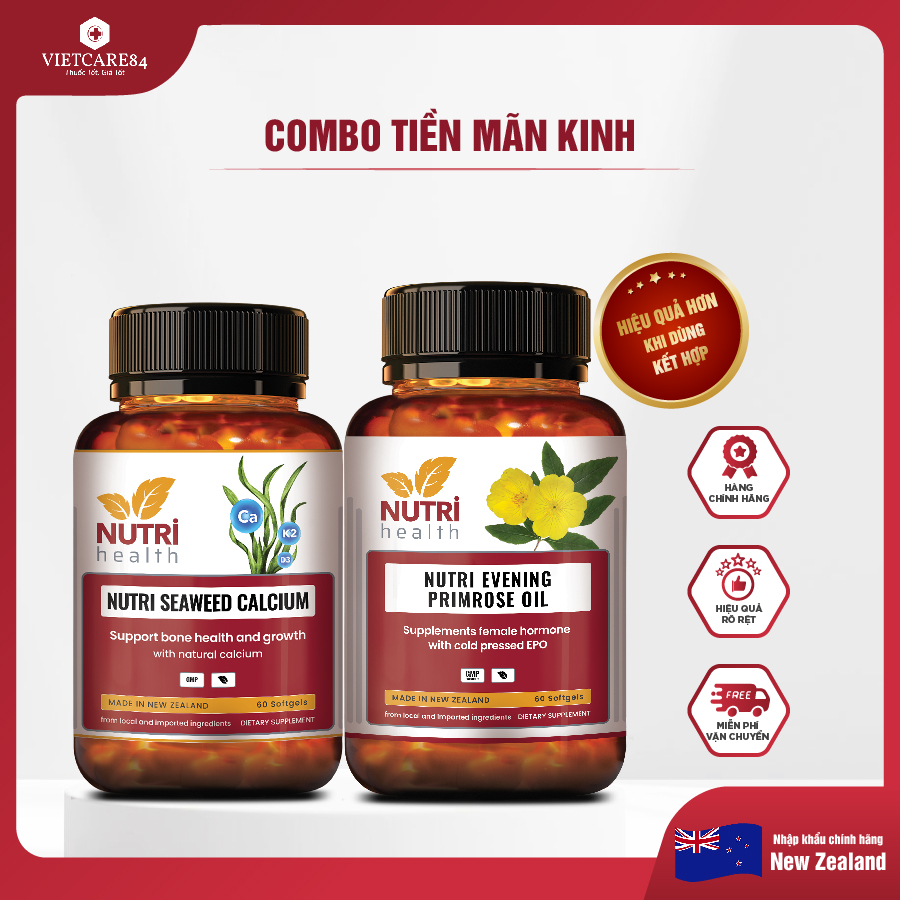 ✨COMBO TIỀN MÃN KINH: Viên Nội Tiết Hyper Evening Primrose Oil 60 Viên+ Canxi Hữu Cơ Nutri Seaweed Calcium 60 Viên