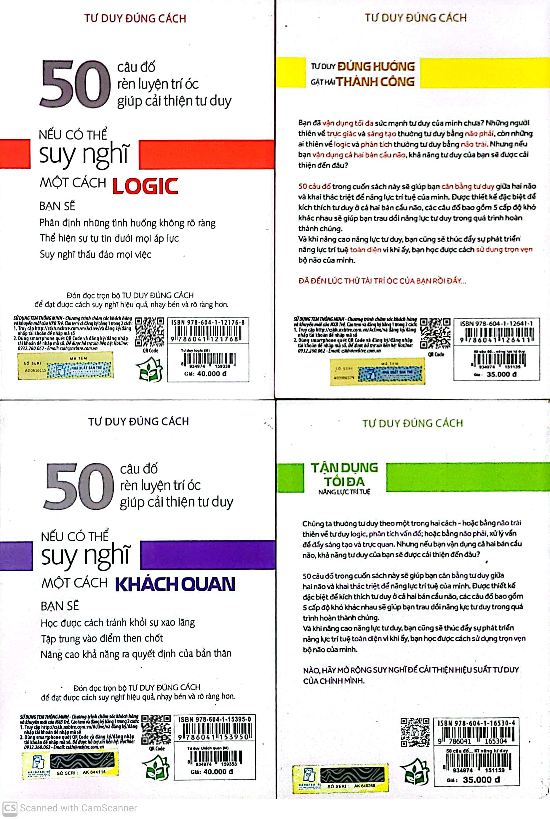 Tư duy đúng cách là bộ sách kiến thức bách khoa được trình bày theo bố cục chặt chẽ, gồm những câu đố khơi gợi trí thông minh kèm theo từng lời gợi ý hữu dụng, với ba mức độ từ dễ đến khó. Qua đó, người đọc sẽ vô cùng ngạc nhiên khi thấy khả năng suy luận thực tiễn, cũng như óc phán đoán, sáng tạo của mình đã cải thiện đáng kể. Đồng thời nhận ra không khó để có được những tư duy khoa học sáng suốt nếu biết cách rèn luyện trí não đúng phương pháp.