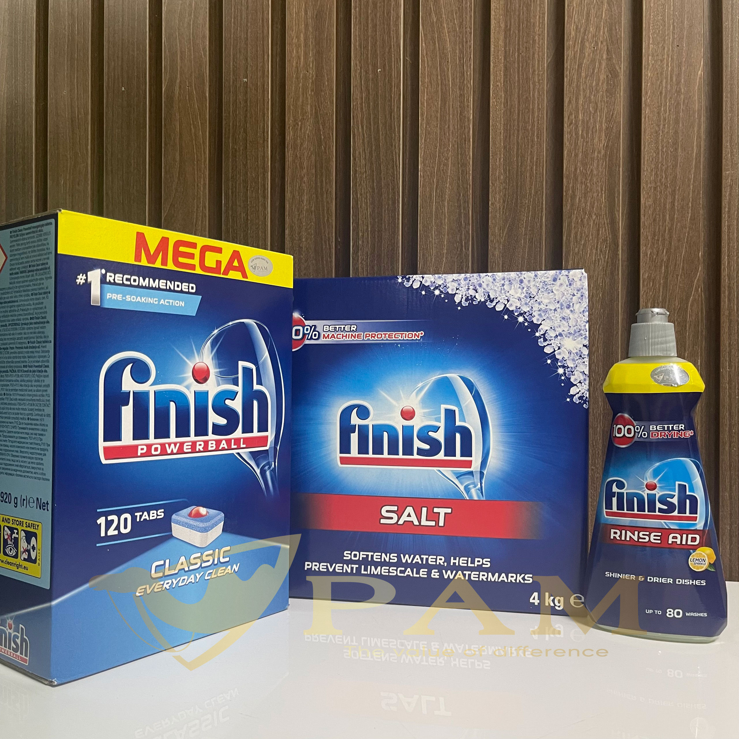 Hãng Finish khuyến cáo nên sử dụng 3 loại chất tẩy rửa riêng biệt để Bát đĩa sạch hơn, sáng bóng hơn và máy bền hơn. 3 loại chất tẩy rửa riêng biệt dùng cho