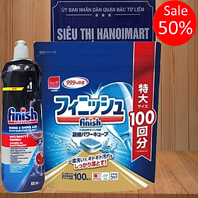 Combo: Viên rửa bát Finish All in one 100 viên +Dung dịch Nước làm bóng finish 750ml +Muối rửa bát finish 1.5kg cho Máy rửa bát chén là bộ 3 sản phẩm đầy đủ chức
