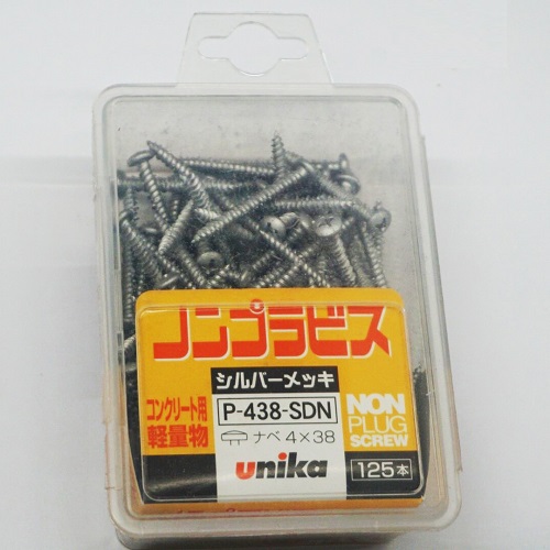 Vít bê tông Không cần dùng tắc kê nhựa. Vít đầu dù, phi 4mm, dài 38mm. Thân vít rất cứng và tự tạo răng bám chặt vào trần, tường. Số lượng: 125vít/hộp. Khả năng chịu lực kéo 2,6kN. Lực kéo tính toán 1/10. Toàn thân vít được mạ bạc, tăng hiệu quả chống gỉ sét. Mũi khoan phi 3.5mm, dài 90mm, chuôi lục giác (6.35mm). Dễ dàng gắn vào các loại máy khoan vặn vít sử dụng pin Chuyên dùng để khoan tường (tường nhật), gạch, , vữa, ALC