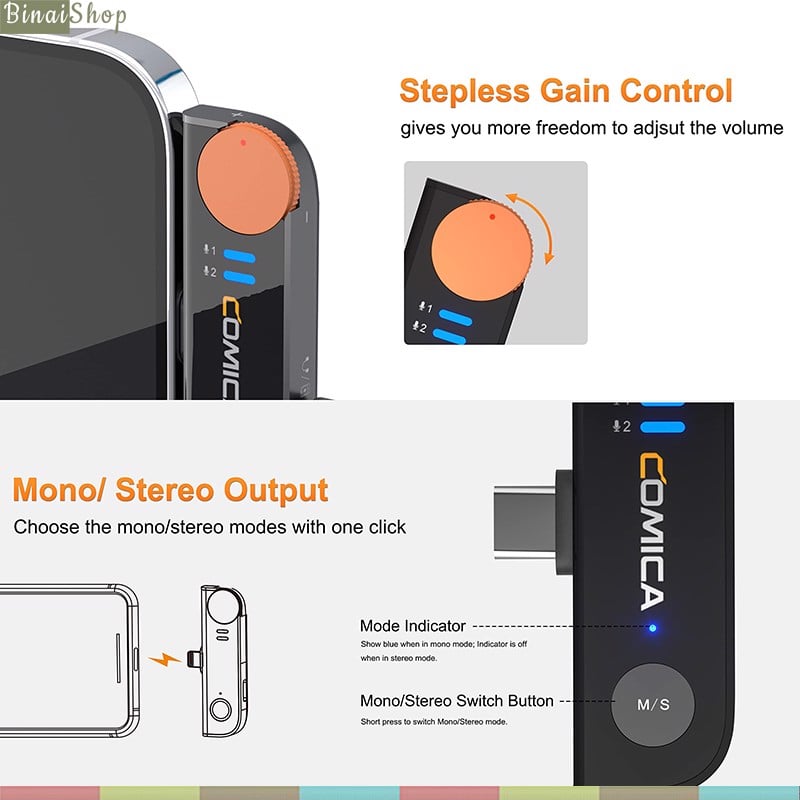 ✨Comica Vimo S (MI / UC) - Micro Cài Áo Không Dây 2.4GHz, Nhỏ Gọn, Lọc Tiềng Ồn Cho Smartphone - Hàng chính hãng