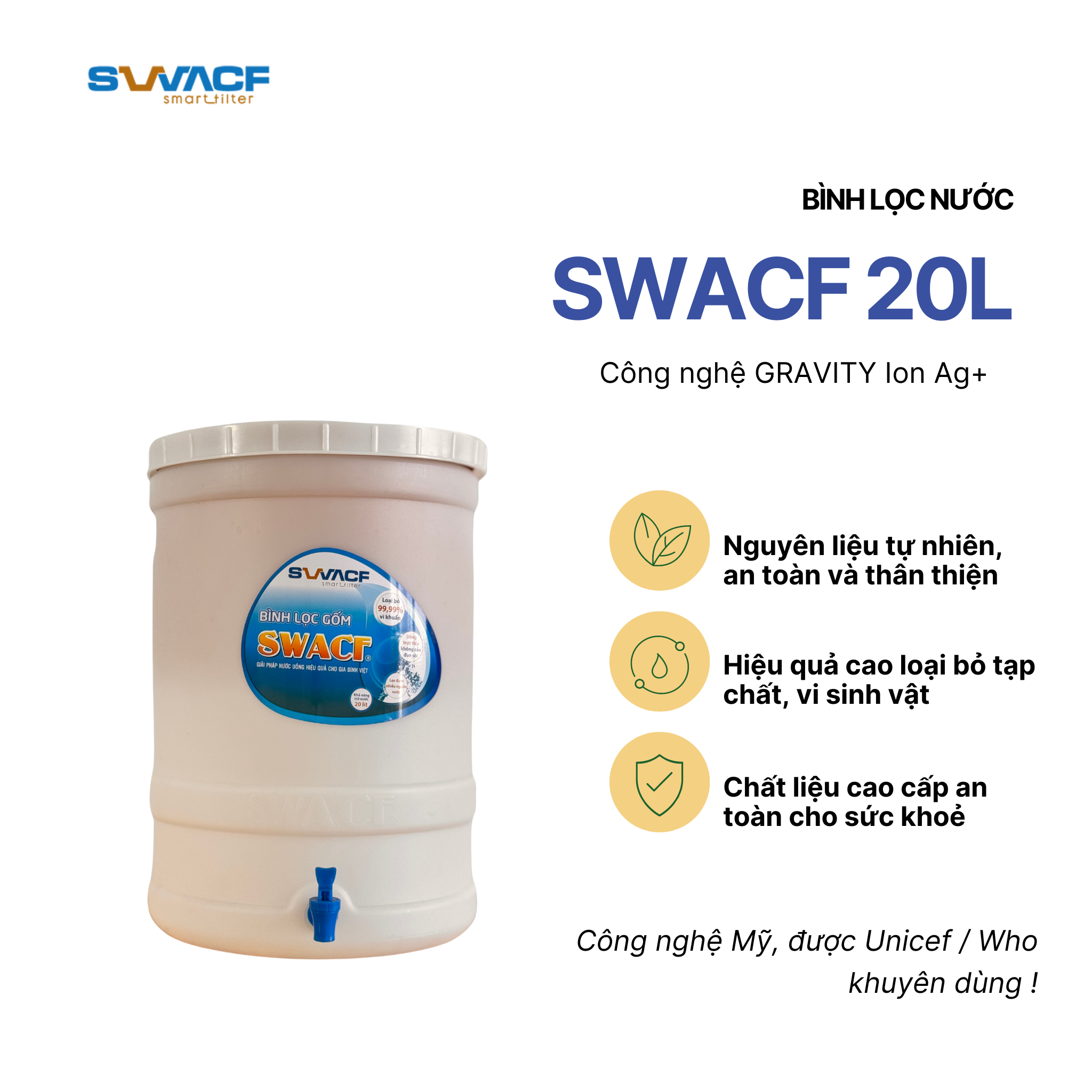 [COMPO 2 BÌNH LỌC NƯỚC] BÌNH LỌC NƯỚC SWACF 20L | Công nghệ GRAVITY Ion Ag+ - Model: 20L CWF - Khử trùng: Tinh thể BẠC - Công nghệ: Mỹ - Xuất xứ: Việt Nam