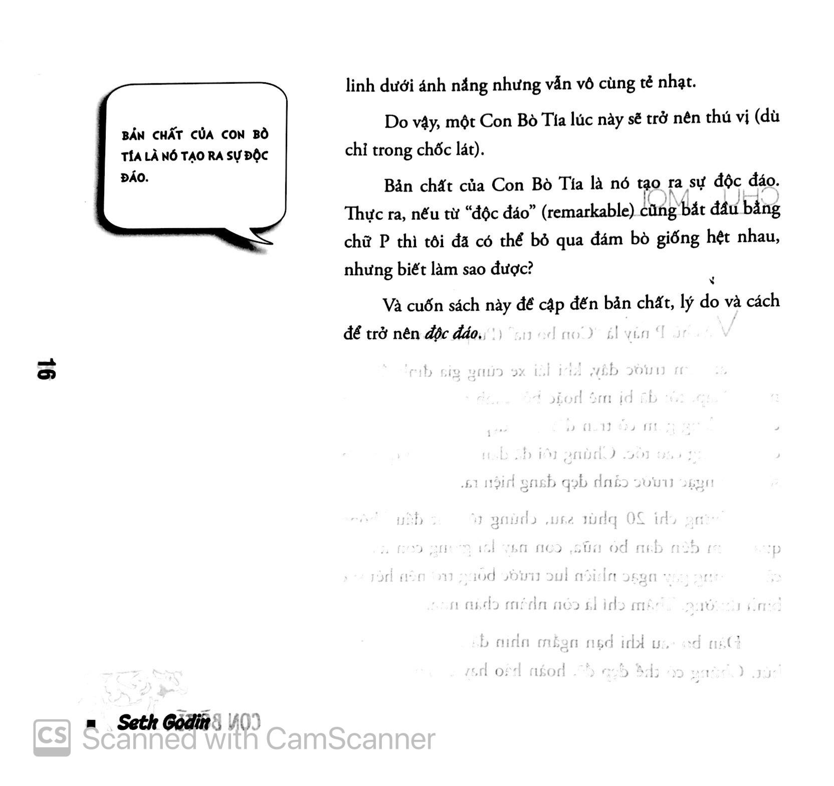Do vậy; một con bò tía lúc này sẽ trở nên thú vị (dù chỉ tạm thời trong chốc lát). Bản chất của con bò tía là nó tạo ra sự độc đáo. Trên thực tế, nếu từ “độc đáo" (remarkable) cũng bắt đầu bằng chữ P thì tôi đã có thể bỏ qua đám bò giống hệt nhau, nhưng biết làm sao đuợc?