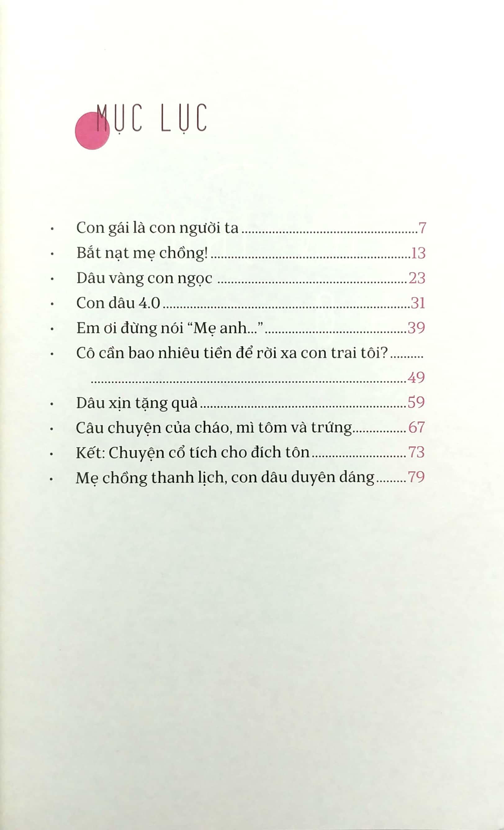 “Cuốn sách này tôi muốn dành tặng tất cả những bà mẹ có con trai và con gái. Có con trai, thì chúng ta sẽ là mẹ chồng, còn nếu có con gái thì con chúng ta cũng có thể sẽ đi làm dâu một bà mẹ chồng nào đó. Làm thế nào để tất cả những phụ nữ khi cùng yêu thương một người đàn ông sẽ vui vẻ hạnh phúc chứ không phải đứng ở hai chiến tuyến mà hét lên “Mẹ hay vợ, anh hãy chọn đi!”. Tại sao chàng trai ấy phải chọn, trong khi hoàn toàn có thể có cả hai trong yêu thương?”