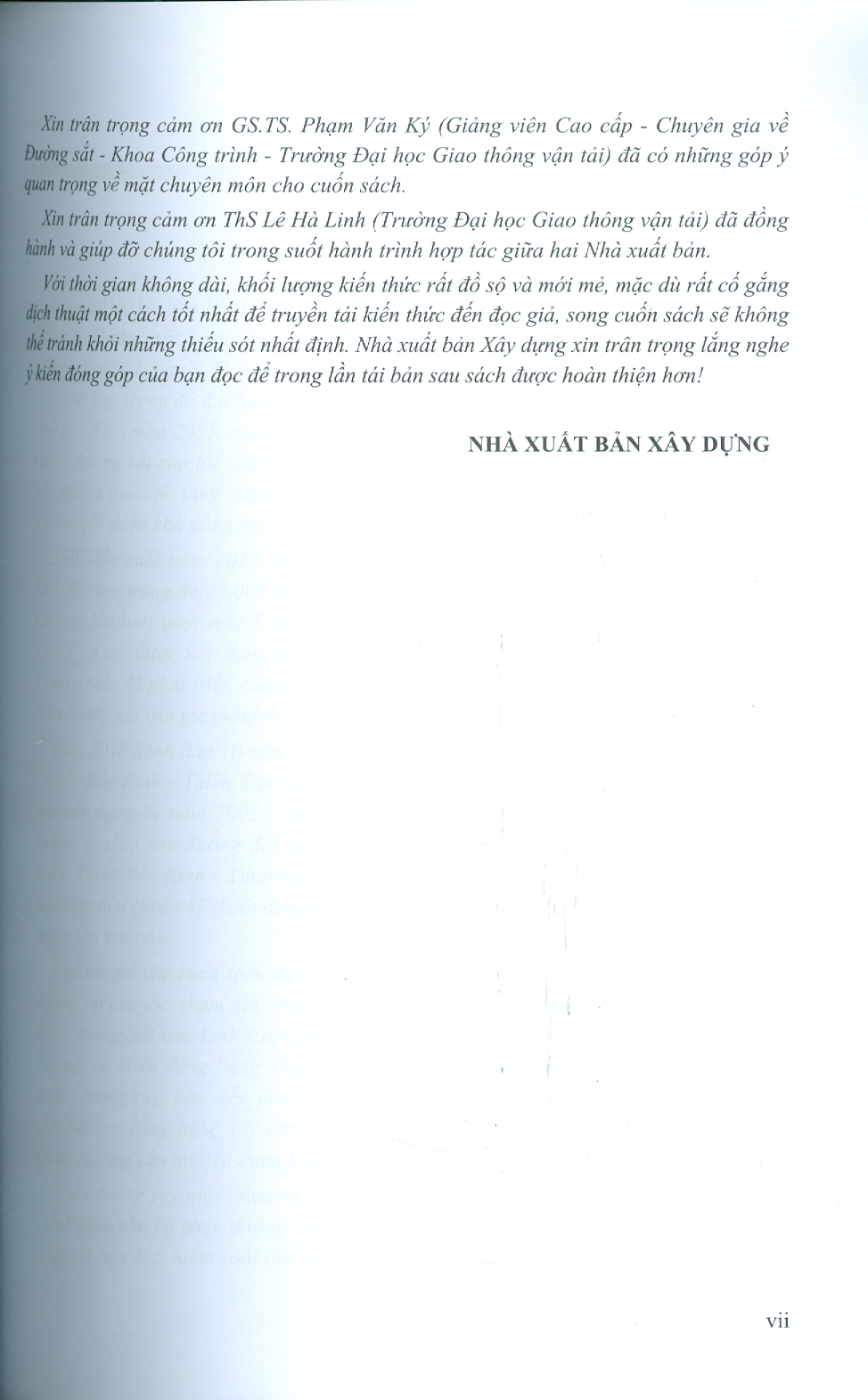 Với mong muốn trở thành hình mẫu về hợp tác xuất bản chuyên ngành khoa học công nghệ, mang những kiến thức mới nhất về công nghệ xây dựng và giao thông nhằm đóng góp một phần nhỏ bé vào sự phát triển của đất nước và vào kỷ nguyên mới “kỷ nguyên vươn mình của dân tộc” như lời hiệu triệu của Tổng Bí thư Tô Lâm, Nhà xuất bản Xây dựng đã đi tắt, đón đầu, thực hiện hợp tác cùng Công ty TNHH Nhà xuất bản Giao thông Nhân dân Trung Quốc để xuất bản các ấn phẩm liên quan đến Công nghệ xây dựng đường sắt, trong đó cuốn sách Công nghệ xây dựng đường sắt cao tốc Trung Quốc là ẩn phẩm mở đầu cho chuỗi ấn phẩm sẽ phát hành trong năm 2025 có liên quan đến vấn đề này.