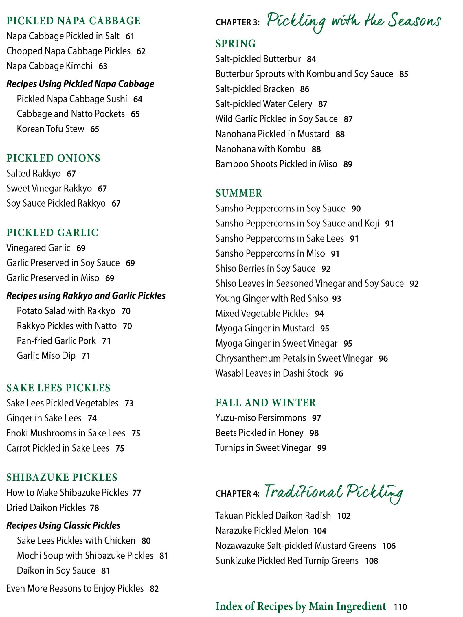 Chapter Two: Classic Japanese pickling recipes--such as Umeboshi Preserved Plums, Napa Cabbage Kimchi, and Daikon Radish Pickled in Miso