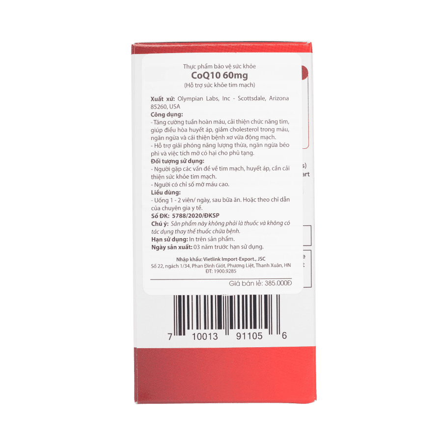 - Extra Virgin Olive Oil……………… 321mg. CoQ10 60mg là sản phẩm được sản xuất từ 100% thành phần tự nhiên, tuyệt đối an toàn cho người sử dụng. Bên cạnh đó, sản phẩm này còn đáp ứng được các tiêu chuẩn khắt khe nhất tại thị trường Mỹ như: