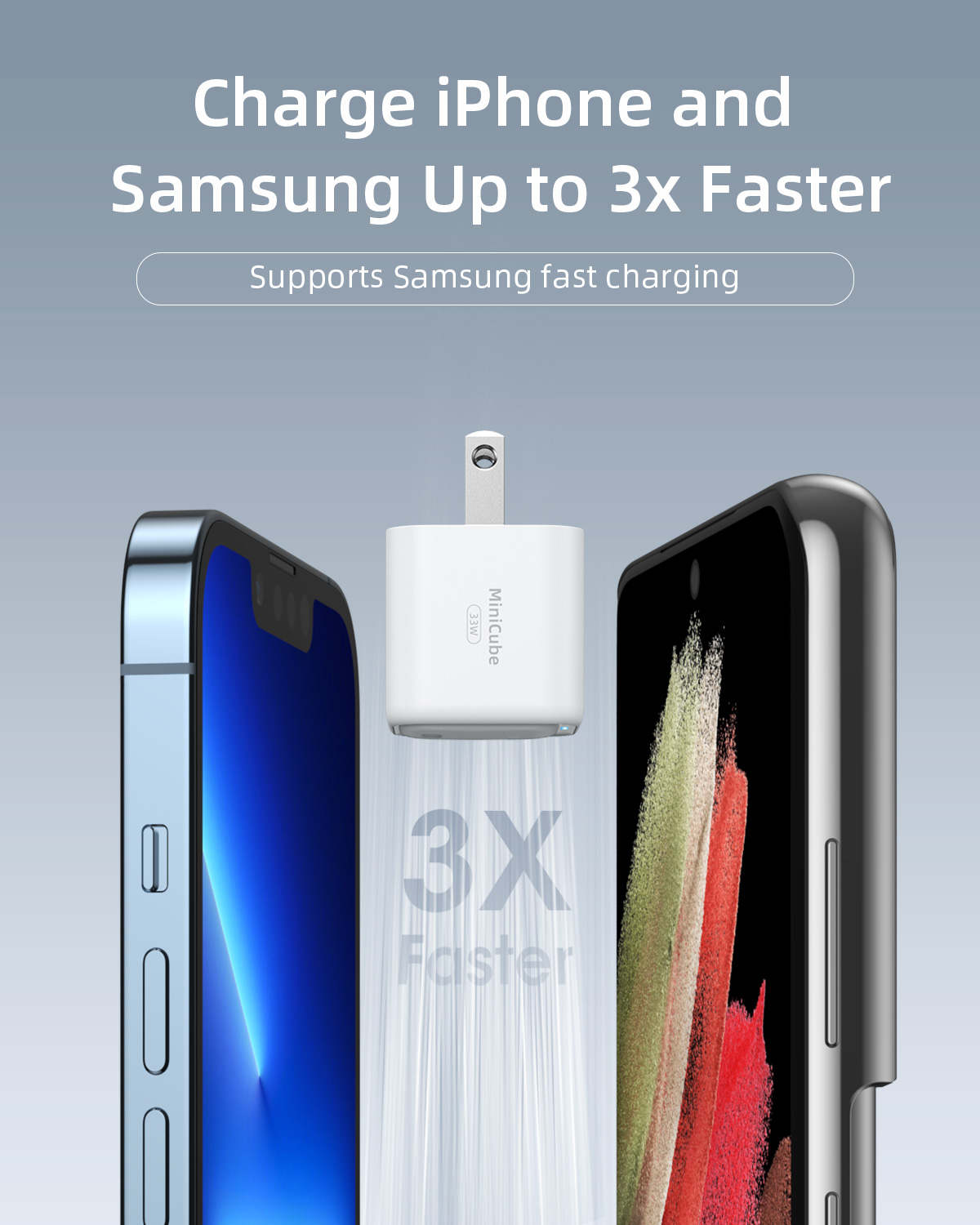 - MiniCube Gan 33W được sử dụng công nghệ ACF GAN II hiện đại nhất hiện nay giúp tăng độ hoàn thiện và tăng hiệu suất sạc nhanh, an toàn, giảm đáng kể kích thước và giảm đáng kể nhiệt độ hoạt động