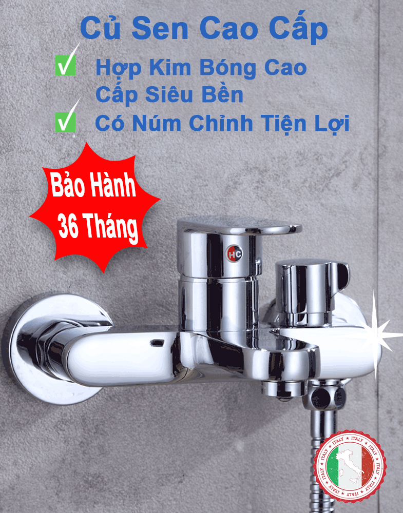 HVMMA từ lâu đã trở thành thương hiệu sen vòi uy tín không chỉ được người dùng tin tưởng mà còn là nhà cung cấp sen vòi cho các công trình lớn cũng như các biệt thự, biệt phủ xa hoa, Hôm nay chúng tôi tự tin cung cấp đến cho quý khách hàng dòng sản phẩm củ sen cực kỳ hiện đại và sẽ là một trong những sản phẩm không thể thiếu trong tương lai: Củ sen tắm (nút xoay cải tiến đỡ hỏng như nút rút lên kiểu cũ) - Hàng xịn HVMMA ITALIA-Hàng Nhập Khẩu Chính Hãng Thiết kế đẹp, hiện đại, phù hợp mọi không gian nhà vệ sinh, toilet, WC, phòng tắm. Là dòng sản phẩm cao cấp thường được dùng trong các công trình xây dựng biệt thự, Vila, khách sạn 5 sao, resort, nhà liền kề, chung cư cao cấp. Đây là kiểu nút xoay để chỉnh nước chảy xuống chân - hoặc chảy lên bát sen cầm tay; Ưu điểm là không hay hỏng như kiểu rút lên xuống truyền thống trước đây (vì nút lên xuống sau một thời gian dễ bị kẹt hoặc bị rút bung ra) Chất liệu: Hợp kim lõi đồng cao cấp không gỉ. Nhiệt độ chịu: hơn 90 ℃ Kích thước tiêu chuẩn. Có núm điều chỉnh lực phun nước vào Tay sen.