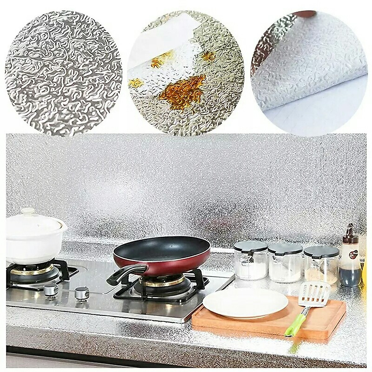 Giấy bạc dán bếp tráng nhôm cách nhiệt màu bạc Mô tả sản phẩm : có 2 kích thước cho các bạn chọn 2 MÉT 40cmx200cm 3 MÉT 60cmx300cm - Chất liệu tráng nhôm cách