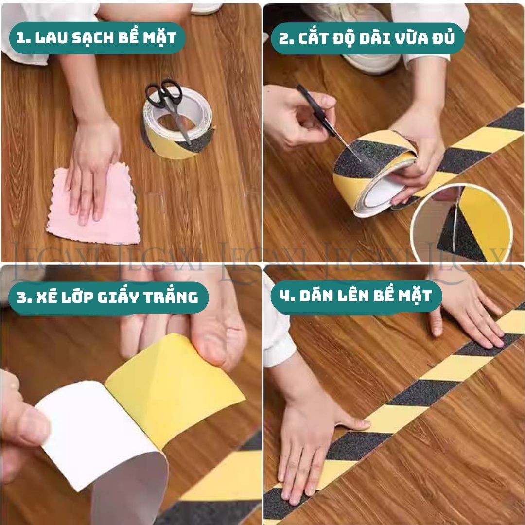 Mua tại TiktokTHÔNG TIN SẢN PHẨM Kích thước sản phẩm: Chiều rộng 5cm, Dày 0.75mm. 2 độ dài để lựa chọn: Cuộn 5 mét và cuộn 10 mét. Màu sắc: Đen vàng nổi bật. Cấu tạo: Lớp keo siêu dính + lớp PVC + Bề mặt Carbon tạo độ nhám. CÔNG DỤNG