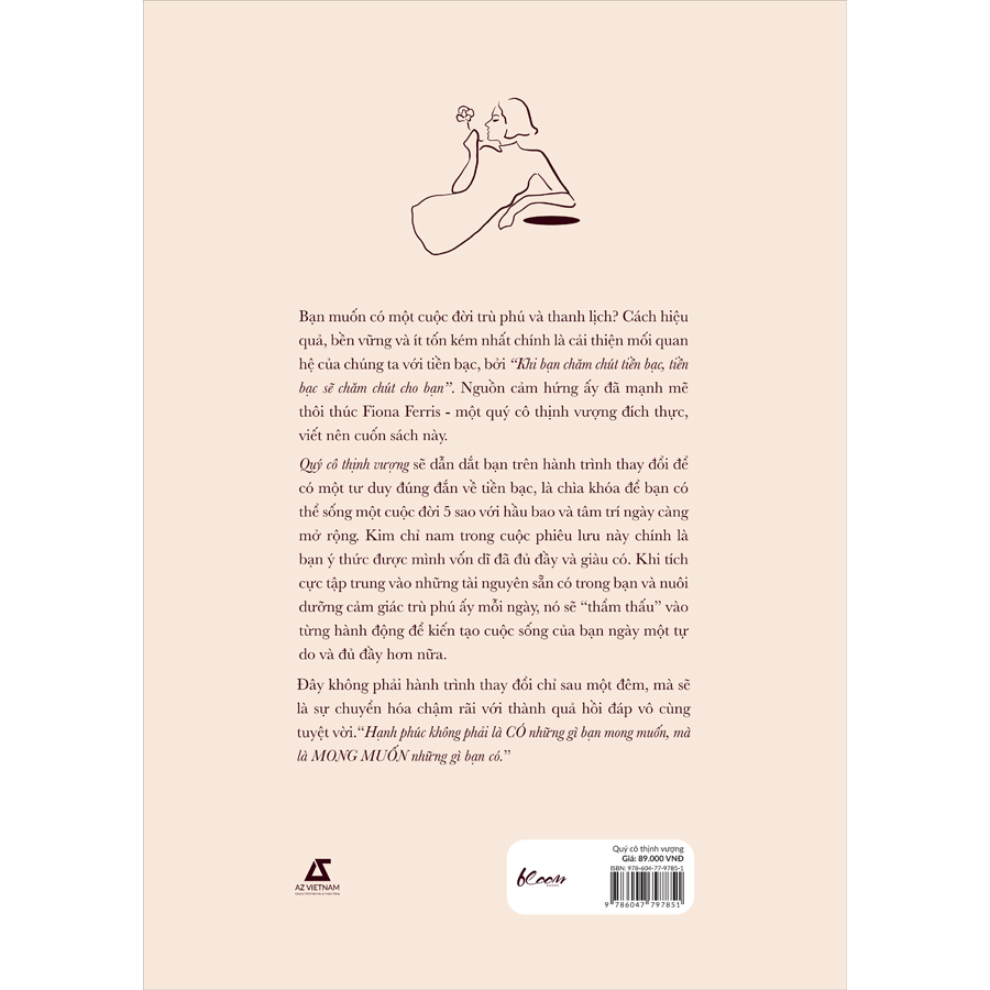 Bạn muốn có một cuộc đời trù phú và thanh lịch? Cách hiệu quả, bền vững và ít tốn kém nhất chính là cải thiện mối quan hệ của chúng ta với tiền bạc, bởi “Khi bạn chăm chút tiền bạc, tiền bạc sẽ chăm chút cho bạn”. Nguồn cảm hứng ấy đã mạnh mẽ thôi thúc Fiona Ferris - một quý cô thịnh vượng đích thực, viết nên cuốn sách này.