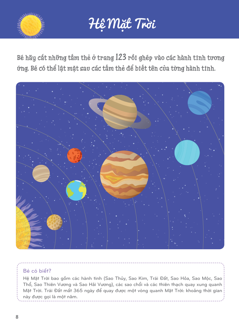 Trước hết, trẻ được bắt đầu khám phá về Trái Đất và Vũ trụ, một chuyến du hành trong không gian và thám hiểm Hệ Mặt Trời.