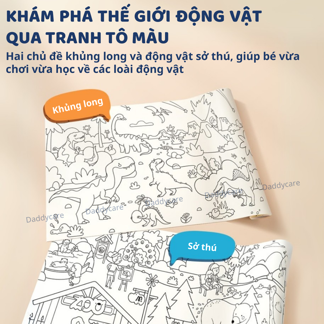 - KHẢ NĂNG SÁNG TẠO VÔ HẠN: Cuộn tranh còn có thể được biến thành nhãn dán tô màu, giúp bé rèn luyện kỹ năng vận động tinh và khả năng sáng tạo vô hạn. Chỉ cần cắt và dán, bé sẽ có những tác phẩm nghệ thuật đầy màu sắc.
