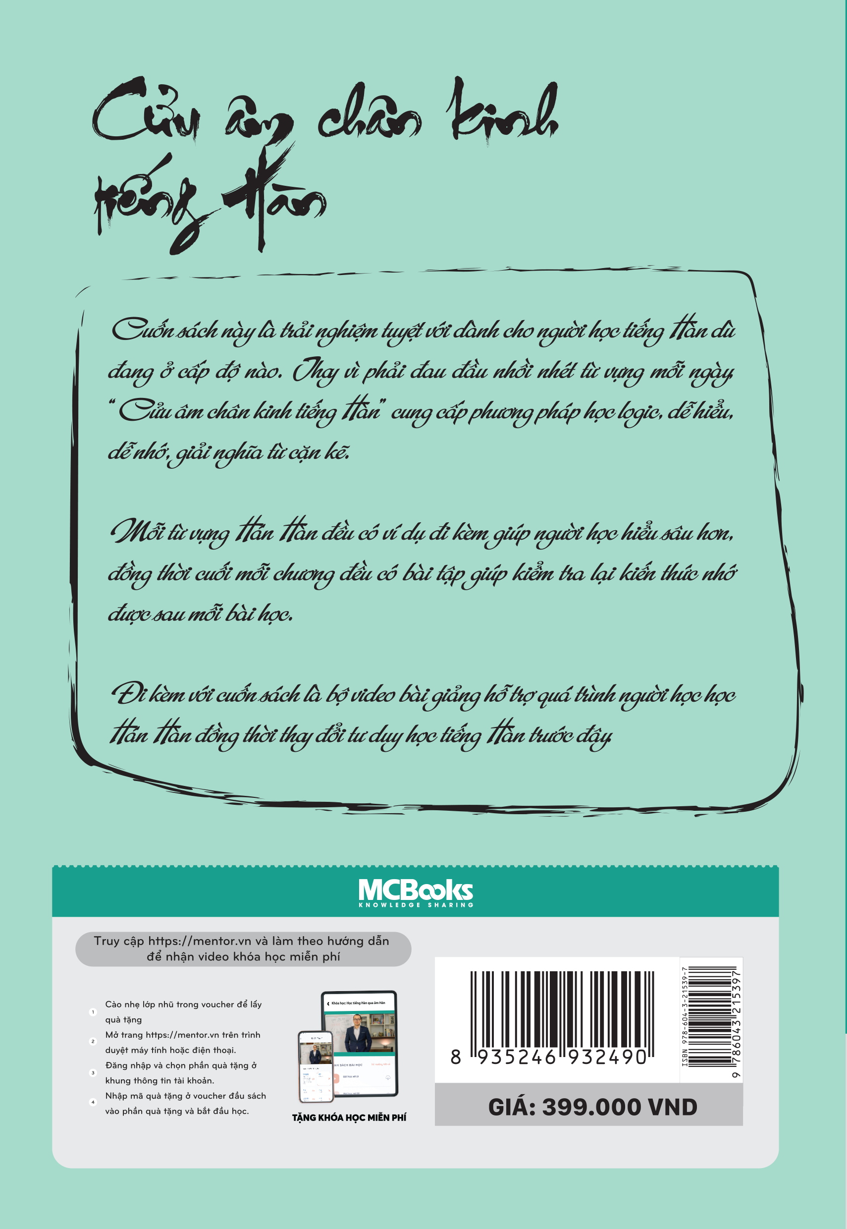 "CỬU ÂM CHÂN KINH TIẾNG HÀN" - HỌC TIẾNG HÀN QUA ÂM HÁNPhương pháp học Hán Hàn giúp nắm chắc 3000 từ vựng/thángDễ dàng đoán nghĩa từ mớiPhù hợp với trình độ từ sơ cấp đến cao cấpĐIỂM NỔI B...