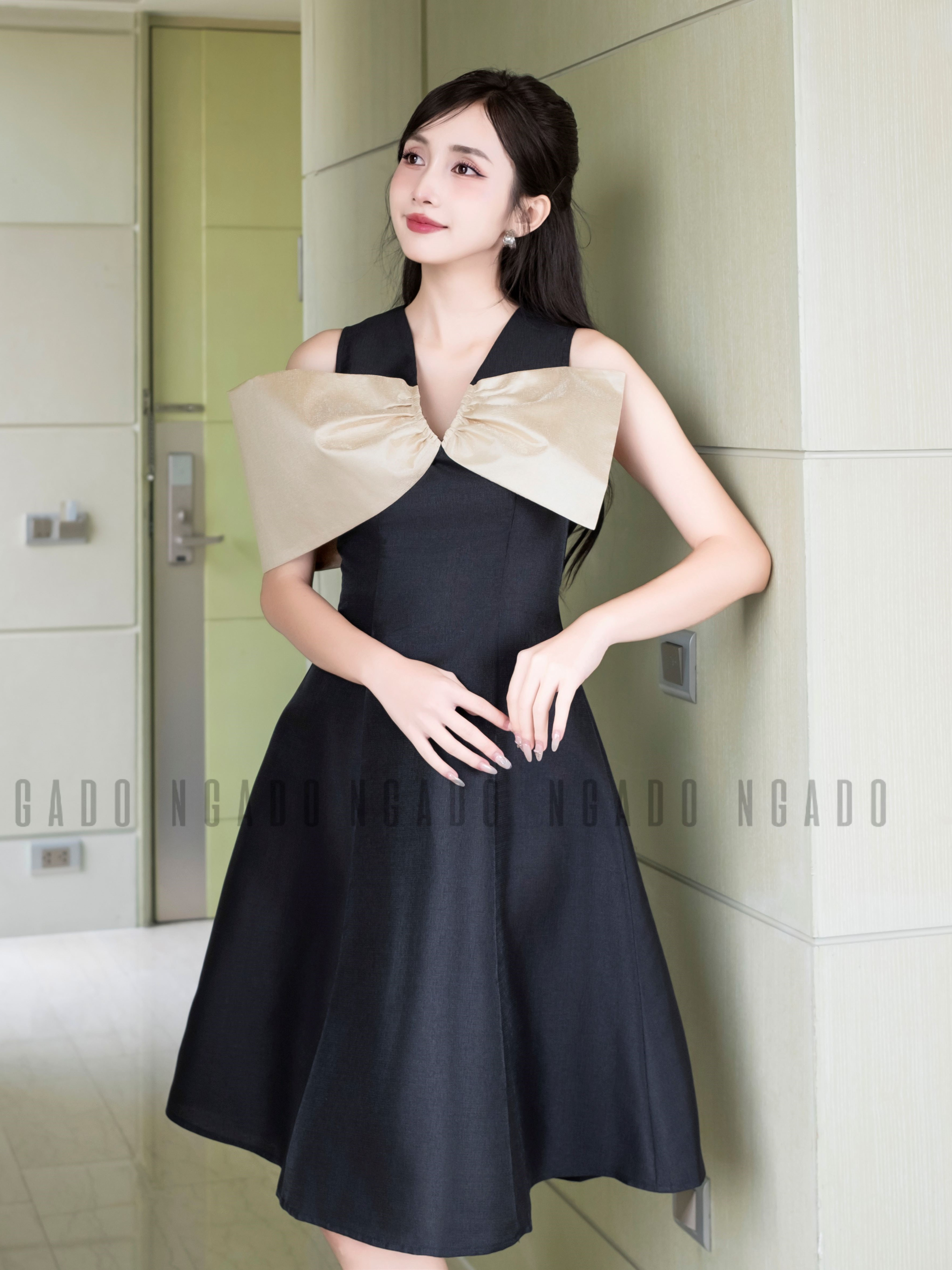 ✨Đầm đen tay nơ NGADO , Đầm xòe , Đầm dự tiệc
