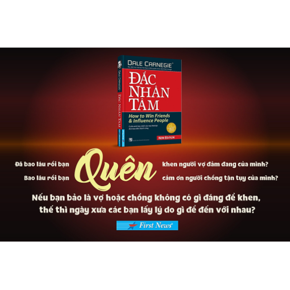 Đắc nhân tâm của Dale Carnegie là quyển sách duy nhất về thể loại self-help liên tục đứng đầu danh mục sách bán chạy nhất (best-selling Books) do báo The New York Times bình chọn suốt 10 năm liền. Được xuất bản năm 1936, với số lượng bán ra hơn 15 triệu bản, tính đến nay, sách đã được dịch ra ở hầu hết các ngôn ngữ, trong đó có cả Việt Nam, và đã nhận được sự đón tiếp nhiệt tình của đọc giả ở hầu hết các quốc gia. Là quyển sách đầu tiên có ảnh hưởng làm thay đổi cuộc đời của hàng triệu người trên thế giới, Đắc Nhân Tâm là cuốn sách đem lại những giá trị tuyệt vời cho người đọc, bao gồm những lời khuyên cực kì bổ ích về cách ứng xử trong cuộc sống hàng ngày. Sức lan toả của quyển sách vô cùng rộng lớn – với nhiều tầng lớp, đối tượng. Đắc Nhân Tâm không chỉ là là nghệ thuật thu phục lòng người, Đắc Nhân Tâm còn đem lại cho độc giả góc nhìn, suy nghĩ sâu sắc về việc giao tiếp ứng xử. Triết lý của Đắc Nhân Tâm là hiểu mình, thành thật với chính mình, từ đó hiểu biết và quan tâm đến những người xung quanh để nhìn ra và khơi gợi những tiềm năng ẩn khuất nơi họ, giúp họ phát triển lên một tầm cao mới. Đây chính là nghệ thuật cao nhất về con người và chính là ý nghĩa sâu sắc nhất đúc kết từ những nguyên tắc vàng của Dale Carnegie. Đây là phiên bản Đắc Nhân Tâm đặc biệt, bìa cứng dày 320 trang, do First News thực hiện và Nhà xuất bản Tổng hợp TP.HCM ấn hành. Một số nguyên tắc – Nghệ thuật ứng xử căn bản: Nguyên tắc 1: Không chỉ trích, oán trách hay than phiền. Nguyên tắc 2: Thành thật khen ngợi và biết ơn người khác. Nguyên tắc 3: Gợi cho người khác ý muốn thực hiện điều bạn muốn họ làm. 6 cách tạo thiện cảm: Nguyên tắc 4: Thật lòng quan tâm đến người khác. Nguyên tắc 5: Hãy mỉm cười! Nguyên tắc 6: Luôn nhớ rằng tên của người khác là một âm thâm êm đềm, thân thương và quan trọng nhất đối với họ. Nguyên tắc 7: Biết lắng nghe và khuyến khích người khác nói về vấn đề của họ. Nguyên tắc 8: Nói về điều người khác quan tâm. Nguyên tắc 9: Thật lòng làm cho người khác cảm thấy họ quan trọng. Báo chí nhắc gì về “Đắc Nhân Tâm” “Nói đến sách nghệ thuật ứng xử thì không thể không nhắc đến "Đắc nhân tâm" của Dale Carnegie. Đây là một trong những cuốn sách gối đầu của nhiều thế hệ đi trước và ngày nay. Với chặng đường hơn 80 năm kể từ khi lần đầu được xuất bản, "Đắc nhân tâm" đã mang đến cho chúng ta bài học vô cùng giá trị đó là nghệ thuật ứng xử để được lòng người. "Đắc nhân tâm" là quyển sách nổi tiếng và bán chạy nhất và có mặt ở hàng trăm quốc gia khác nhau, và hơn thế nữa đây còn là quyển sách liên tục đứng đầu danh mục sách bán chạy nhất do thời báo NewYork Times bình chọn trọng suốt 10 năm liền.” – C, 3 cuốn sách nên đọc đi đọc lại trong đời để ngẫm về cuộc sống “Đắc Nhân Tâm – của tác giả Dale Carnegie là quyển sách nổi tiếng nhất, bán chạy nhất và có tầm ảnh hưởng nhất của mọi thời đại. Tác phẩm đã được chuyển ngữ sang hầu hết các thứ tiếng trên thế giới và có mặt ở hàng trăm quốc gia. Một khám phá rất thú vị dành cho các bậc phụ huynh khi đọc cuốn sách này là biết cách lắng nghe trò chuyện cùng con, cách trị chứng tè dầm của trẻ nhỏ, hay cách làm cho một đứa trẻ từ quậy phá thành ngoan ngoãn… Đó hẳn là những câu chuyện nuôi dạy trẻ rất đúng, rất hay, rất đời thường đáng để bạn đọc suy ngẫm và chiêm nghiệm”. – M, Đắc nhân tâm: ‘Cha đã quên’ nhắc những điều nên nhớ “Đắc Nhân Tâm” đưa ra những lời khuyên về cách cư xử, ứng xử và giao tiếp với mọi người để đạt được thành công trong cuộc sống. Đây được coi là một trong những cuốn sách nổi tiếng nhất, bán chạy nhất và có tầm ảnh hưởng nhất mọi thời đại mà bạn không nên bỏ qua.” – C, 20 câu nói vàng đáng nhớ từ tuyệt tác để đời “Đắc Nhân Tâm”. Về tác giả Dale Breckenridge Carnegie (24 tháng 11 năm 1888 – 1 tháng 11 năm 1955) là một nhà văn và nhà thuyết trình Mỹ và là người phát triển các lớp tự giáo dục, nghệ thuật bán hàng, huấn luyện đoàn thể, nói trước công chúng và các kỹ năng giao tiếp giữa mọi người. Ra đời trong cảnh nghèo đói tại một trang trại ở Missouri, ông là tác giả cuốn Đắc Nhân Tâm, được xuất bản lần đầu năm 1936, một cuốn sách thuộc hàng bán chạy nhất và được biết đến nhiều nhất cho đến tận ngày nay. Ông cũng viết một cuốn tiểu sử Abraham Lincoln, với tựa đề Lincoln con người chưa biết, và nhiều cuốn sách khác. Carnegie là một trong những người đầu tiên đề xuất cái ngày nay được gọi là đảm đương trách nhiệm, dù nó chỉ được đề cập tỉ mỉ trong tác phẩm viết của ông. Một trong những ý tưởng chủ chốt trong những cuốn sách của ông là có thể thay đổ