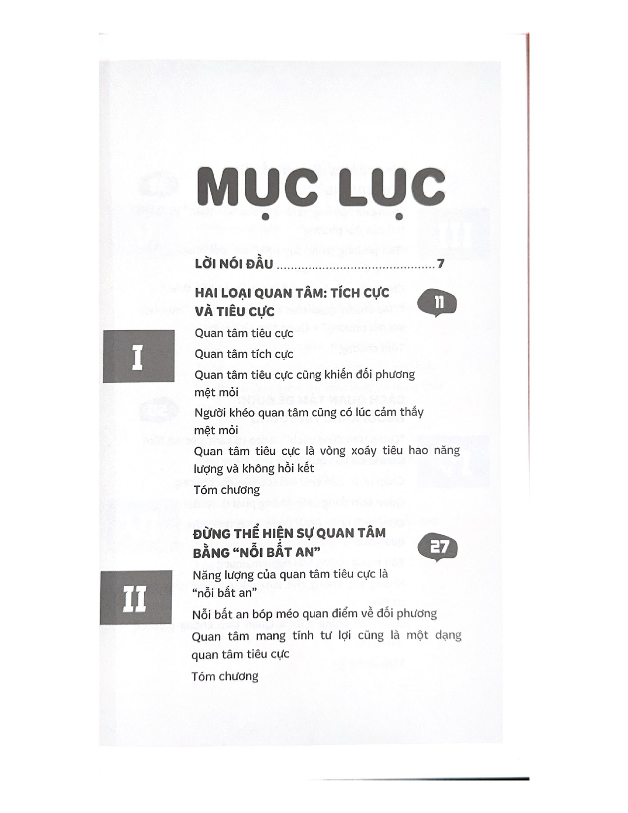 - Giới thiệu Hằng ngày, có rất nhiều người cảm thấy mệt mỏi và khổ sở vì gặp phải các vấn đề trong giao tiếp. Một số người không biết cư xử thế nào để gây thiện cảm với đối phương, số khác thì luôn quan tâm người khác hơn chính mình và chấp nhận chịu thiệt thòi trong các mối quan hệ. Bạn có muốn tìm hiểu về bí quyết ĐẮC NHÂN TÂM bằng lòng quan tâm của người Nhật để giúp mọi người xung quanh đều vui vẻ, bản thân cũng được chữa lành? Quan tâm đúng cách không chỉ đơn thuần là phương pháp giúp cải thiện các mối quan hệ xã hội, mà còn là thái độ quan trọng quyết định chất lượng cuộc sống của bạn. Thông qua những tình huống cụ thể và hình ảnh minh họa sinh động, ĐẮC NHÂN TÂM KIỂU NHẬT sẽ giúp bạn hiểu rõ hơn về khái niệm “quan tâm”, biết cách ứng xử và giao tiếp tích cực để xây dựng cuộc sống thoải mái, trọn vẹn hơn.