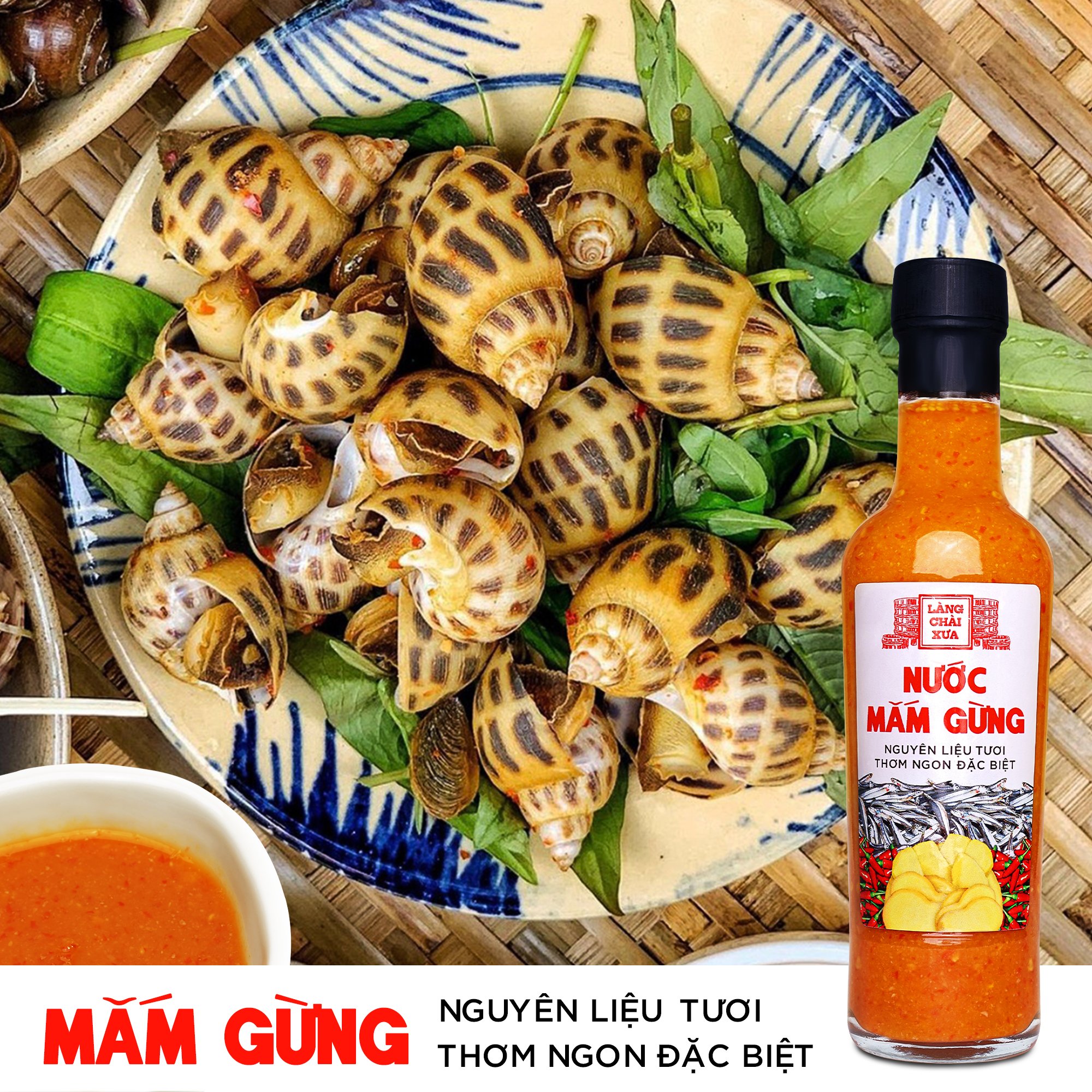 - Nước mắm gừng tỏi ớt Làng Chài Xưa rất thơm ngon và khác biệt, được làm công phu bằng nguyên liệu tươi. Nước mắm nhỉ cá cơm nguyên chất 40N đạm ủ thùng gỗ, gừng tươi, tỏi, ớt xiêm tươi hòa quyện nồng nàn giúp món ăn ngon hơn rất nhiều, đặc biệt là ốc hương hấp, cơm gà hoặc cháo vịt. Hãy cảm nhận hương vị thơm ngon tự nhiên!
