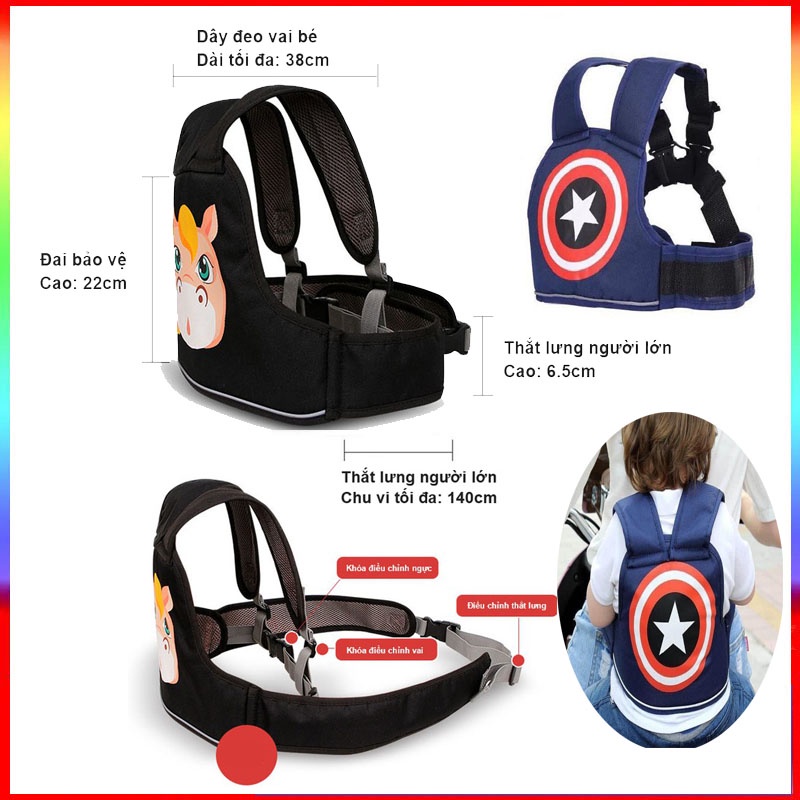 Thiết kế dành riêng cho các bé từ 1-12 tuổi, giúp các bé an toàn hơn khi tham gia giao thông bằng xe máy cùng người lớn.