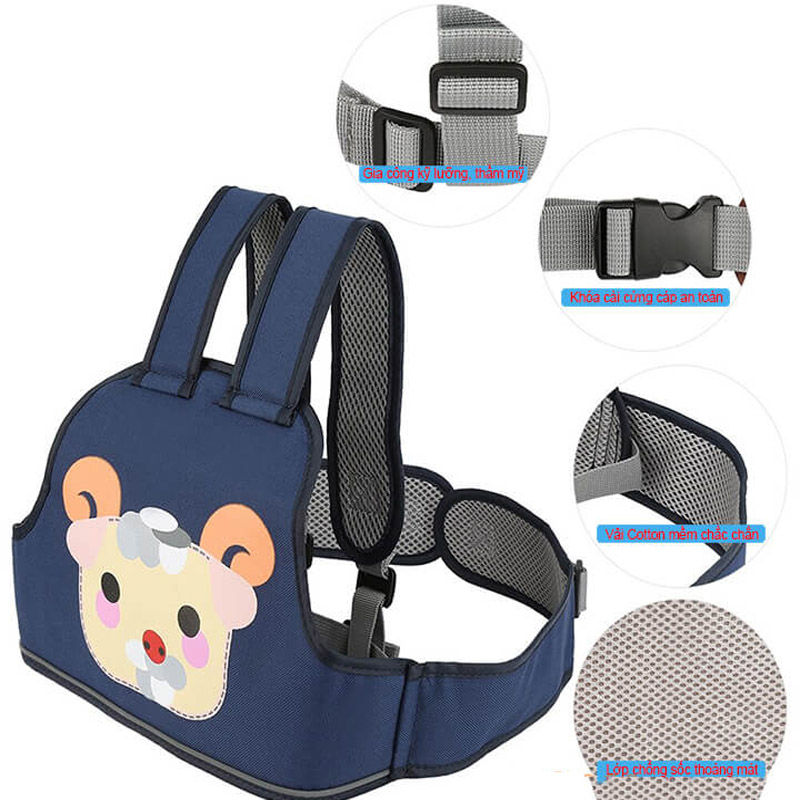 Điểm đặc biệt so với các loại đai kiểu cũ là sản phẩm có thêm phần dây đeo vai, giúp cố định tư thế của bé khi ngồi trên xe máy và giúp cho cha mẹ cảm nhận được cử động của bé tốt hơn.
