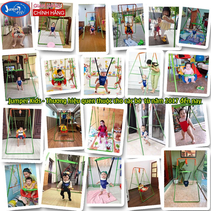 - Xích đu nhún nhảy Jumper Kids bộ cao cấp bổ sung thêm 2 thanh ngang dưới chân giúp bộ khung chắc chắn hơn. - Xích đu nhún nhảy tập đi Jumper Kids cho bé