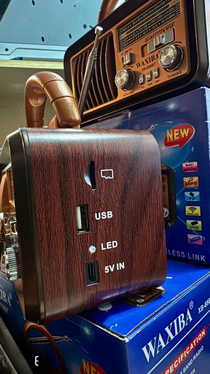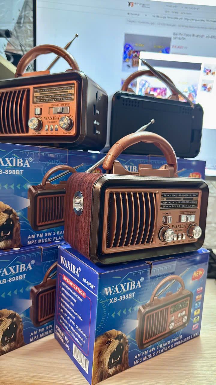 ---GIỚI THIỆU VỀ ĐÀI RADIO FM WAXIBA XB-898BT : -Đài radio Waxiba XB-898BT là dòng sản phẩm phổ biến MẪU MỚI NHẤT NĂM 2025 , mang đến chất lượng ưu việt với mức giá phù hợp. Nhiều người đã tin tưởng và ưa chuộng sản phẩm này... -Đài radio đa năng XB-898BT bắt sóng được 5 băng tần AM, FM và SW. Đặc biệt, sản phẩm được trang bị Công nghệ sóng vượt trội và đèn pin giúp bạn sử dụng dễ dàng trong môi trường thiếu ánh sáng và thuận tiện trong việc điều chỉnh sóng đài... -Với kích thước nhỏ gọn và hình dáng bắt mắt , đài radio FM Waxiba XB-898BT dễ dàng đóng gói và vận chuyển đi xa mà không chiếm quá nhiều diện tích trong balo hay vali. -Âm nhạc đỉnh cao với Đài Radio Waxiba XB-898BT 1.Đài fm Waxiba XB 898BT:Giải pháp hoàn hảo cho người yêu nhạc Bạn yêu nhạc và luôn tìm kiếm một thiết bị đa năng để thưởng thức âm nhạc yêu thích của mình? Đài Radio Waxiba XB-898BT chính là lựa chọn hoàn hảo dành cho bạn! Với thiết kế cao cấp và tích hợp nhiều tính năng độc đáo, sản phẩm này hứa hẹn mang đến trải nghiệm nghe nhạc tuyệt vời, đồng thời đáp ứng mọi nhu cầu giải trí của bạn.VỚI âm thanh sống động mang lại cho bạn cảm giác tuyệt vời khi nghe bản nhạc mình yêu thích 2.Đài nghe nhạc Waxiba-898BT Đa dạng kết nối và pin sạc tiện lợi Bộ sản phẩm của đài radio nghe nhạc Waxiba XB-898BT bao gồm hai thành phần chính, một Pin Sạc 18650 và một dây sạc. Đây là một sự kết hợp đáng chú ý và hữu ích để đảm bảo bạn luôn sẵn sàng thưởng thức âm nhạc yêu thích của mình mọi lúc, mọi nơi. Pin Sạc 18650 là một giải pháp hiệu quả cho việc cung cấp năng lượng cho đài radio. Với khả năng lưu trữ lớn và tuổi thọ tốt, pin này giúp bạn dễ dàng sạc lại để sẵn sàng sử dụng. Bạn không cần lo lắng về việc hết pin giữa chừng, mà chỉ cần sạc nhanh chóng và tiếp tục thưởng thức âm nhạc vui vẻ. ---Thông số kỹ thuật: