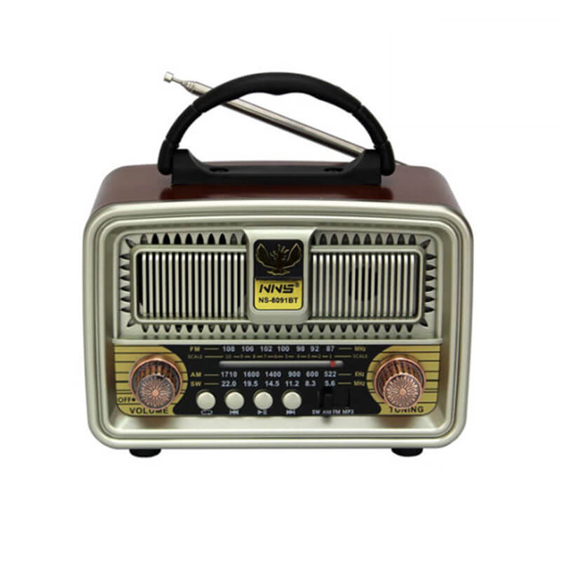 Mô tả sản phẩm Đài FM- NS 8091BT Radio FM/AM/SW nghe nhạc thẻ nhớ usb ,kết nối Bluetooth ,hình thức cổ điển sang trọng: