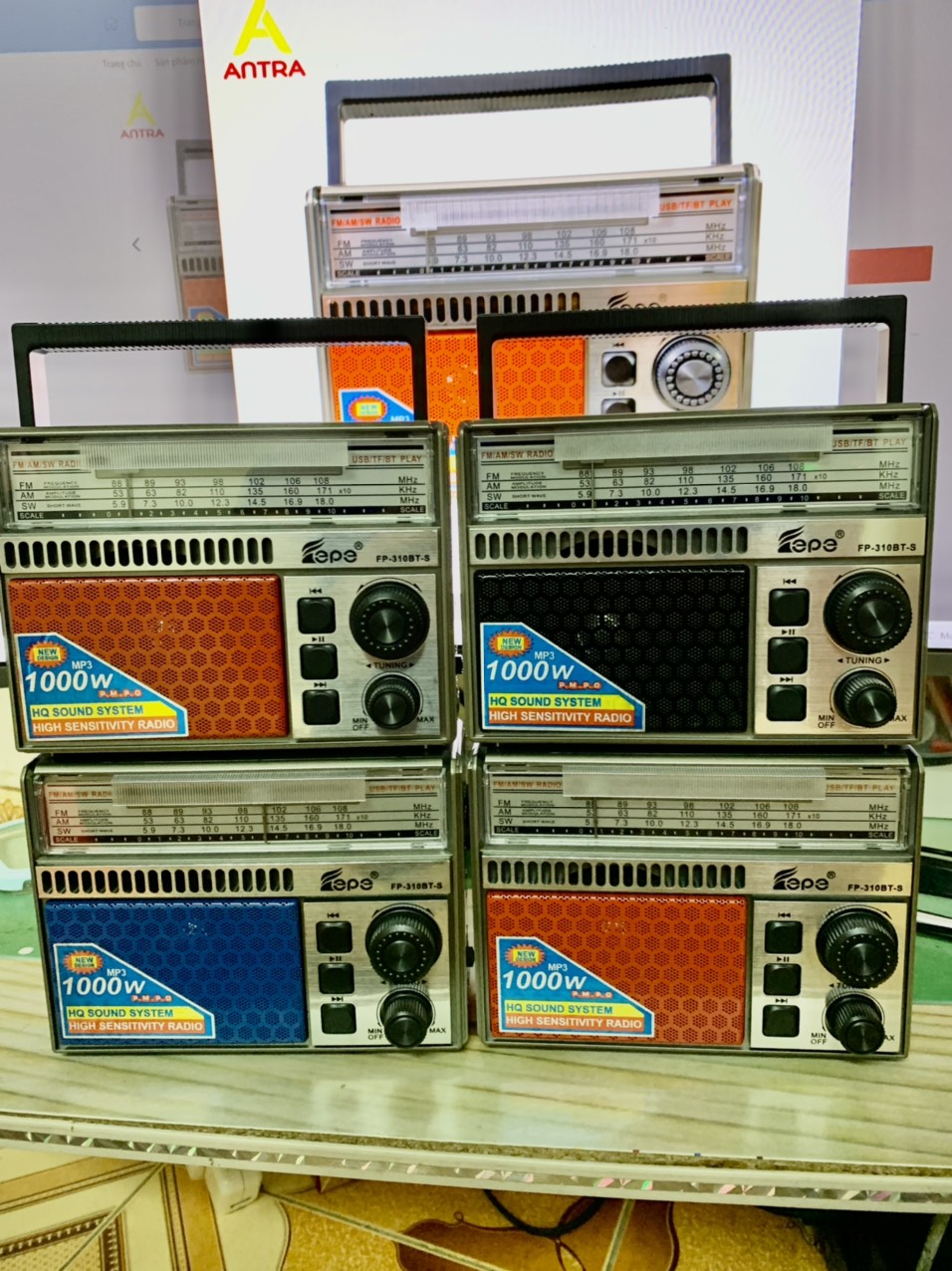- Đài radio cho người già Fp-310BT có thể bắt được 3 băng tần AM, FM và SW. Bên cạnh đó, đài radio bluetooth còn sử dụng pin sạc 18650 (h2pro tặng kèm 1 quả pin), 2 pin đại AA siêu tiết kiệm hoặc cắm điện lưới 220V trực tiếp như các thiết bị thông thường khác, thuận tiện cho việc dò đài. - Đài radio nghe nhạc Fepe là dòng máy nghe nhạc cao cấp, ngoài các tính năng cơ bản của đài radio mini thì máy radio này còn có thêm tính năng bluetooth, nghe nhạc mp3 không cần thẻ nhớ, giúp kết nối với các thiết bị âm thanh khác được nhanh chóng và thuận tiện hơn. Ngoài ra, đài nghe nhạc Fepe Fp-310BT còn tích hợp jack cắm USB, Thẻ nhớ thông dụng. - Máy nghe nhạc bluetooth Fepe được thiết kế đặc biệt hơn các loại máy radio khác, với tích hợp tấm thu năng lượng mặt trời cao cấp, đài bluetooth mini có thể sạc pin ở cả những nơi không có điện lưới chạy, phù hợp với các nơi vùng sâu vùng xa, trên núi, hải đảo nơi điện áp không ổn định. * Đài radio bluetooth Fepe Fp-310BT có 3 màu: - Màu xanh - Màu đen - Màu đỏ
