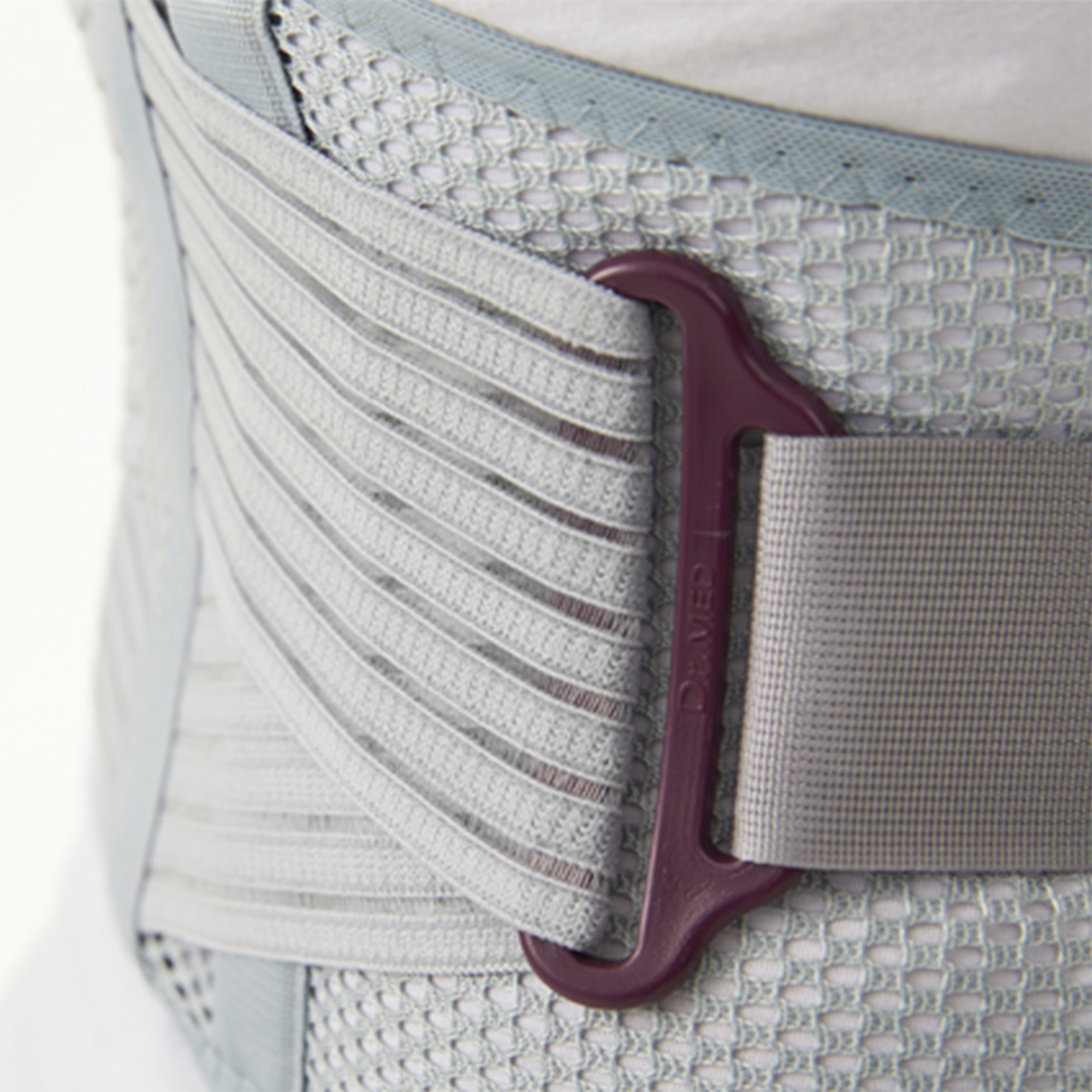 - Hỗ trợ phía sau vùng xương cùng-thắt lưng và tăng áp lực trong ổ bụng với 2 dây chạy dọc cột sống